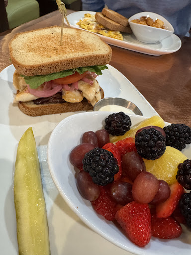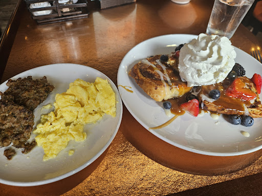 Read moreStopped by based on reviews and was not disappointed! It was very busy when I came around noon. There was an hour wait, but since I was flying solo that day, they actually got me in almost immediately. 1 may be the loneliest number, but it's definitely faster, I guess. Lol Staff was to the point, but they were definitely not rude. They were obviously busy and turning over a lot of tables. My waiter did provide recommendations, which was nice. I ended up getting the cinnamon roll French toast with sides of eggs and sausage. The eggs didn't have much seasoning, which is fine because I prefer I add my own salt and pepper anyway. The sausage was very tasty but did have quite a bit of gristle. I enjoyed the flavor but wasn't able to finish them due to a slight texture aversion. Not a big deal. The main course was absolutely decadent. I savored every bite and the flavors of the French toast, toppings, and syrup were all distinct, yet very complimentary. I highly recommend it. But be warned, it is dessert and breakfast in one meal and quite rich. Overall, it was a very pleasant and delightful experience. I'm glad I stumbled upon it while visiting for...
