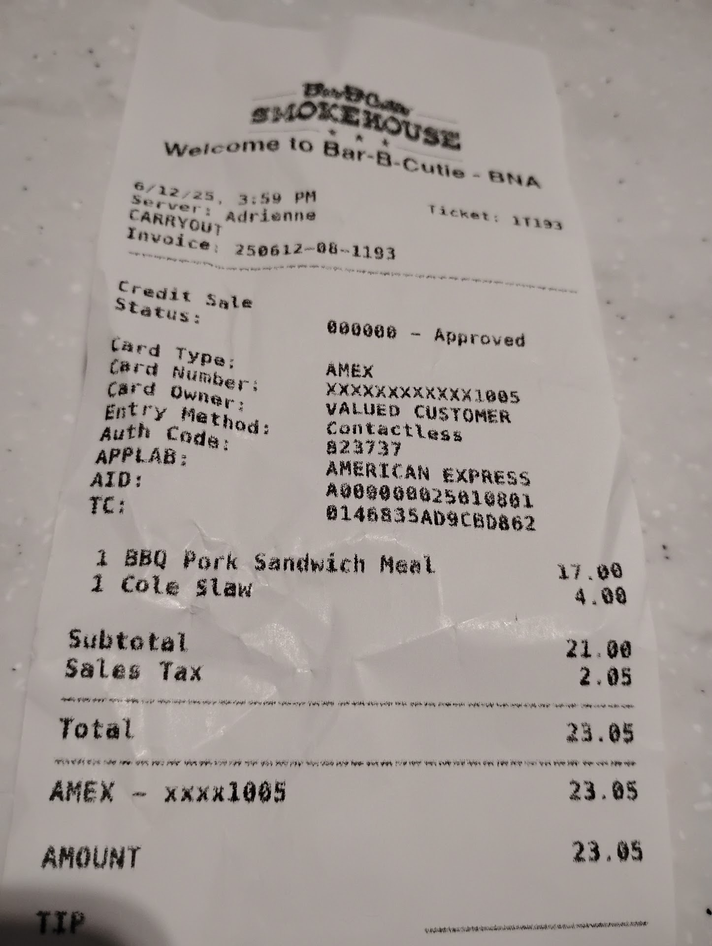 Nashville is known for great barbecue, but Bar-B-Cutie in the A/B Terminal clearly missed that memo. The pulled pork was disappointing..., dry, flavorless, and lacking any hint of smoke or barbecue essence. Honestly, Iâve had better from a grocery store deli.