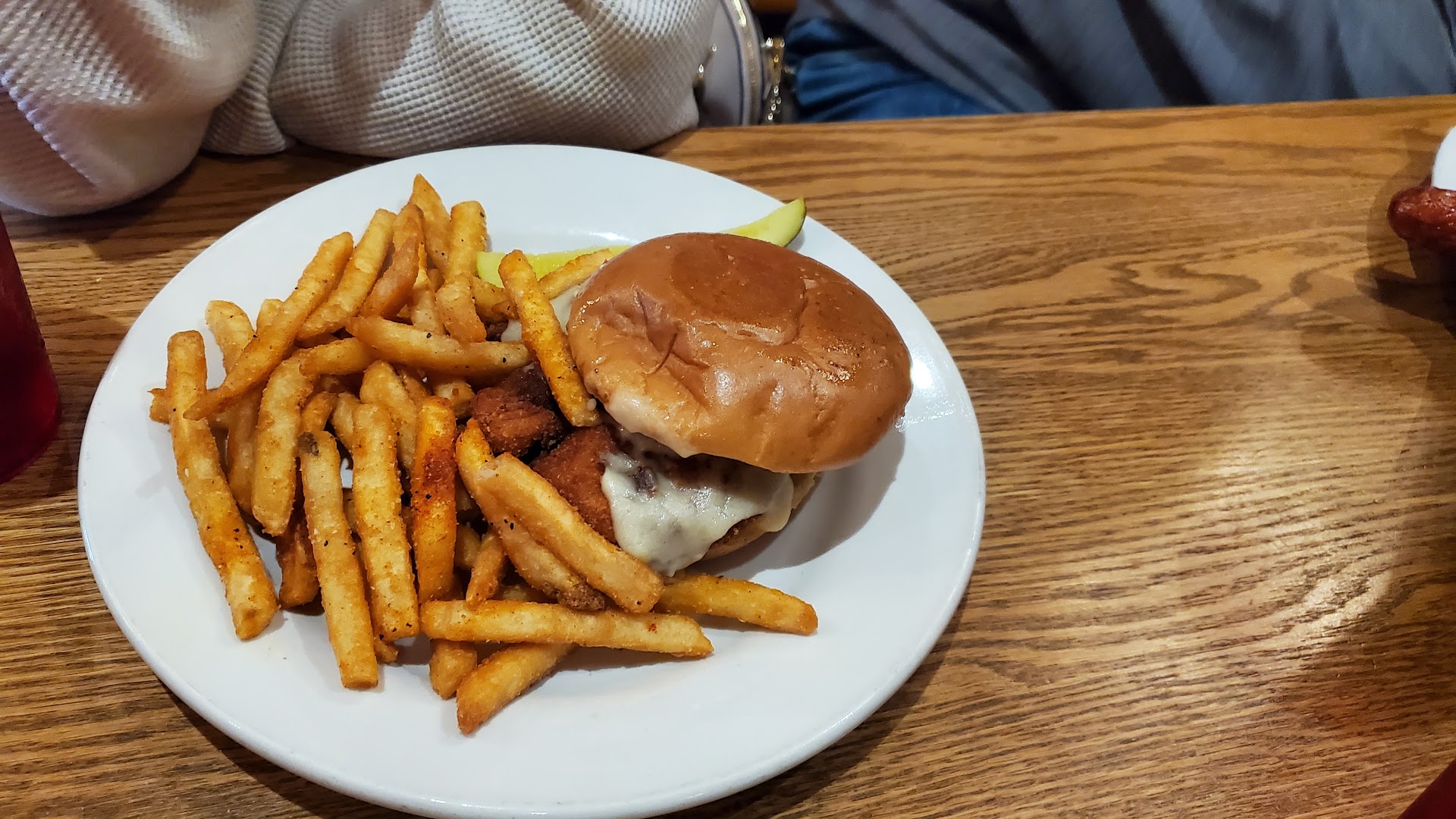 The food was outstanding. I had the currywurst—the sausage and fries were cooked to perfection, exactly how I remember it in Germany. We shared some Kartoffelpuffer (potato pancakes) at the table, and they were deliciously crispy and comforting. Lauren ordered the chicken schnitzel, and it was equally fantastic—crispy on the outside, juicy on the inside, and full of flavor.