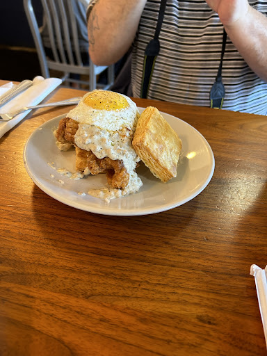 Ā Ā Ā Read moreNice spot down the street from where we stayed during our Christmas vacation trip to Nashville TN. It was a small, quaint space, but enough to for seating. It was full when we got there and a line, but the wait wasn't too long. Gave us time to peruse the menu. Tried the East Nasty which is a Biscuit layered with a boneless fried chicken thigh, covered in sausage gravy. And I also got scribbled eggs and grits, along with Oolong tea. The scrbled eggs are not usual look of scrambled eggs, but almost like a rectangular omelette. Which I admire the different take on the eggs. Did not realize the tea would actually be real tea leaves brewing in a small glass pot of hot water! Unique experience for me concerning a restaurant, but I enjoy unique. The biscuit as well, is not your original grandma-type biscuits. It was squarish, and kinda flaky like a croissant, but it did have a light Biscuit texture. Everything was very nice, but I would say I'd hope the biscuit top and bottom would have been a little softer, although this is how biscuits are. Also when the oolong tea first comes out, I liked it light and smooth, but the longer it sets or steeps, it will definitely get stronger quickly. And it did keep it's heat the whole time I was eating brunch. I will definitely try Biscuit Love again and try another option...