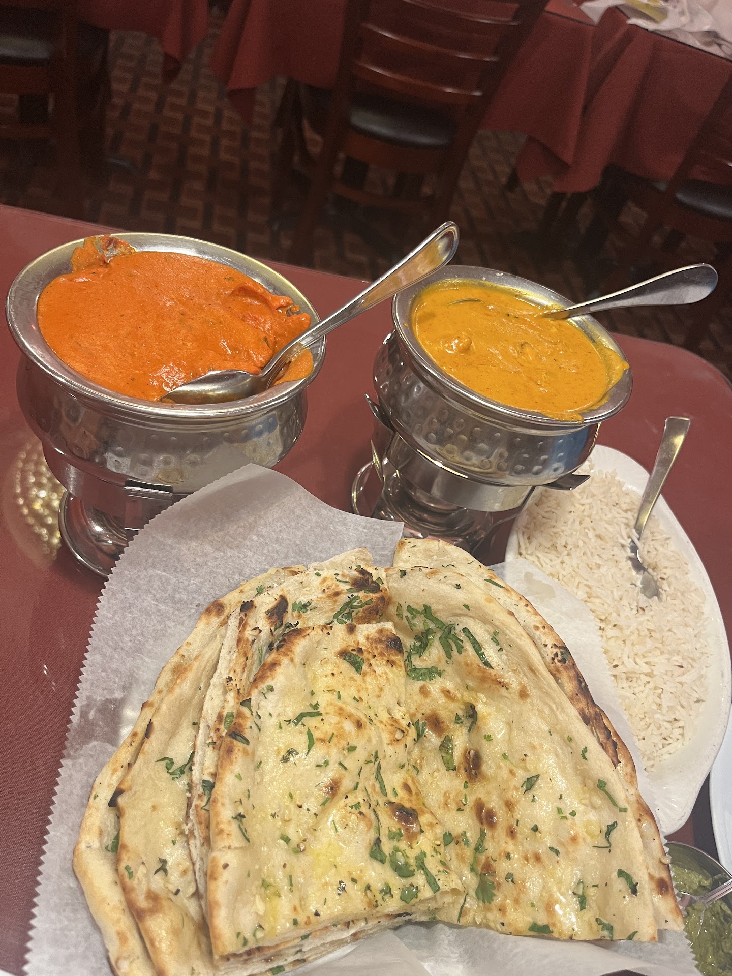 A dish that I've fallen in love with at Bombay Palace is known as Chicken Methi. The Methi (Fenugreek leaves) gives a distinct flavor and the creaminess makes the dish just melt in your mouth. If you prefer non cream based dishes, there are coconut cream or even cashew based curries that you can request.