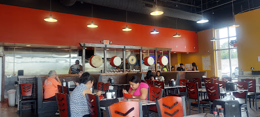 The utensils available included chopsticks and single-use plastic forks. The forks were flimsy, woefully inadequate for what we were eating. My wife needed to cut her vegetables smaller, but there were no knives to be had. I really could have benefited from some soy sauce or sriracha, but couldn't find anyāeventually I did see it was kept on the counter where the orders came out; I never would have had any reason to go over there when I had my food, so it seems like they weren't expected to be used as table condiments.