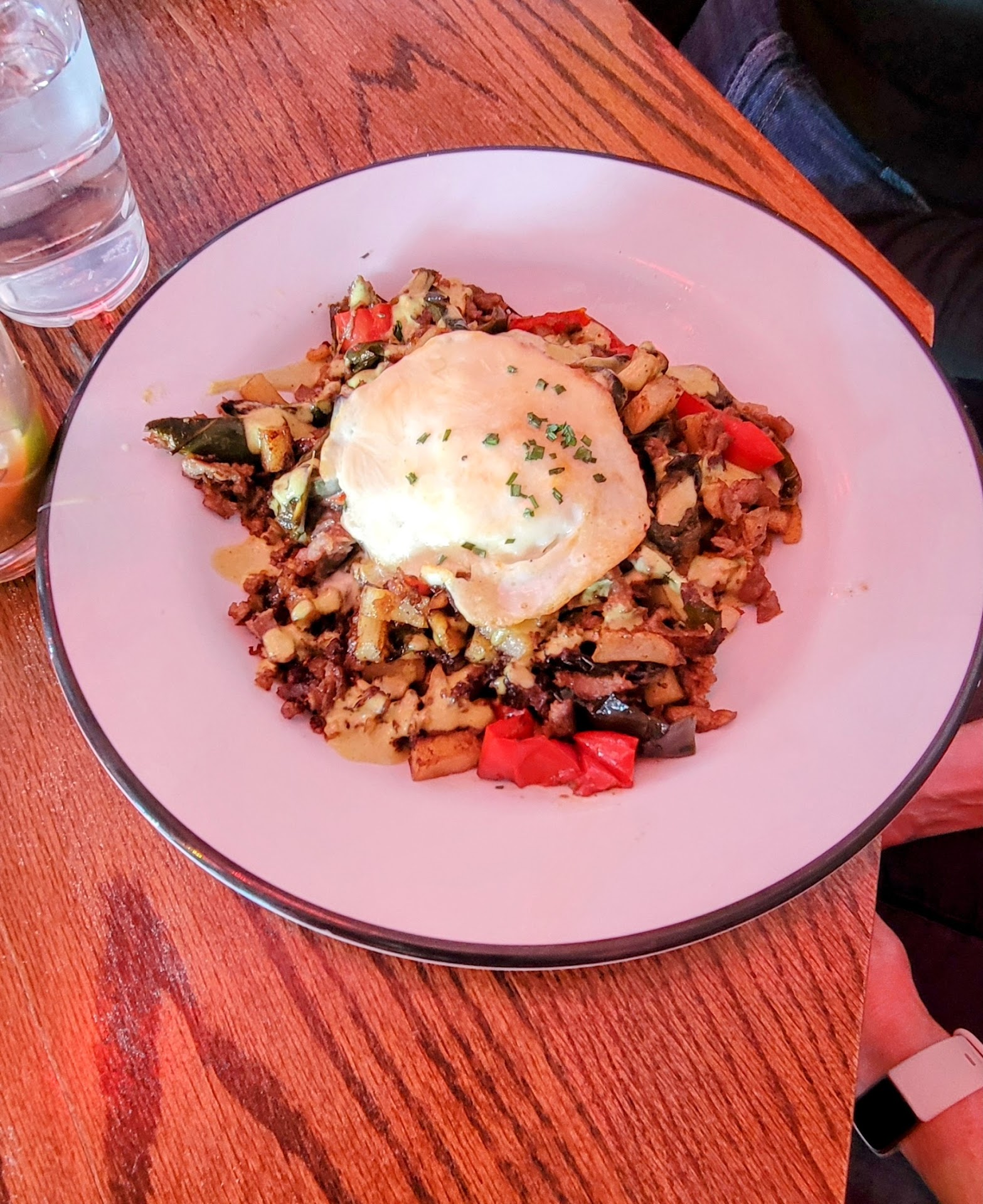 While we waited for our food, the restaurant started to fill. All the tables were full and there was a lot of hustle and bustle, but still a comfortable casual atmosphere. This is when what we thought was live music came in and set up. It was not live music but a DJ who played club music. It was so loud we could not even have a conversation with each other at our table. For a Saturday brunch, I expected easy country or folk, it was legit club mixes. Instead of the mimosa feel in the afternoon, it was like we were closing out the bar at 2 AM.