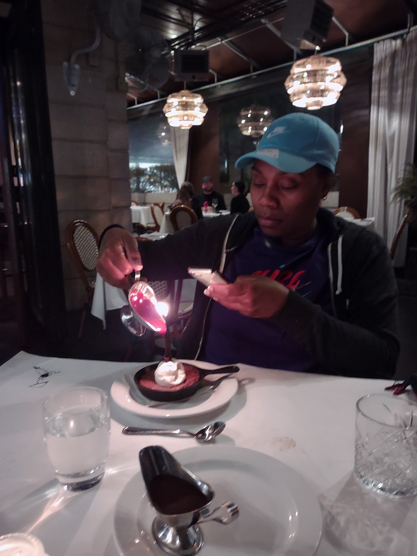 We started off with an order of spinach and artichoke dip & the yum yum sushi roll! The sushi rolll was to die for!! It was so good and I normally just eat one piece of a roll but this was WONDERFUL ! I highly recommend that if you like sushi. The spinach on the other hand wasn’t really good. It was as if the spinach wasn’t as fresh before cooked. For dinner I ordered the chicken Milanese with creamy whipped mashed potatoes & it was pretty good overall. The Parmesan crust was a bit overpowering the champagne blanc sauce. I def recommend drinking a wine with this meal to balance it out!