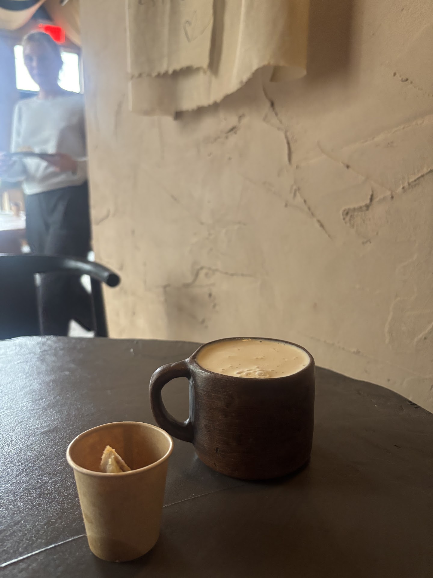 We both went for the Babu Latte, and listenâthis thing didnât need to go that hard, but it did. Espresso with a whisper of cardamom, topped with frothed milk. Bonus? It came with a shard of baklava, just to make sure your soul fully ascended. To be fair, the small size was $7 each; but keep the dream alive: that price included your airfare to this Greek villa, after all.