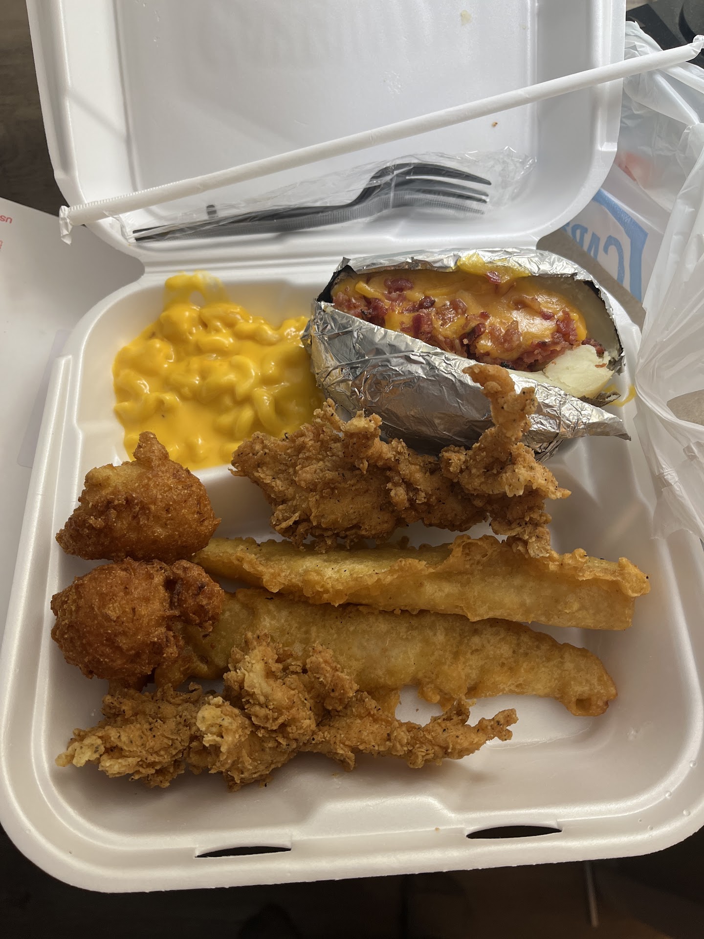 I went to this location after a busy day of work and was super excited and pumped to try the new spicy fish I specially asked for all food to be fresh which I should of known that the total opposite is what was delivered to me as a former employee myself working for the company Iām pretty familiar on how the system works granted that a lot of the workers now have gotten lousy but thatās no reason not to deliver quality fresh seafood The fish was so hard when I went to bite into it nothing but mush and crumbs fell from it the cracklings at the bottom of the food tray were burnt and tasted like straight up grease and the pot that they cooked the fish in (old grease at that ) the sides were fries and okra the okra was still raw inside the fries were cold and old the kids meal chicken well the chicken was so old and hard the Mac n cheese was mushy letās just say the only thing that was good was the drinks that we received which was totally disappointing because I wanted to really experience this hot fish that has been advertised and it was trash and definitely nothing to brag about Its sad that I wasted my time but mostly I wasted my hard earned money throw it all away throw the entire caption ds away as well never again signed disappointed ...