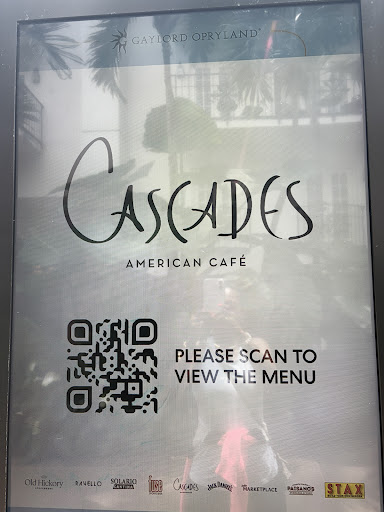 Read moreAfter relaxing time at spa at Gaylord decided to grab dinner at Cascade American. We were seated quickly, but due to open nature of the restaurant the music from nearby bar, steady hum of voices inside the larger space, etc did not make conversation at normal volume always easy. Our server made some suggestions and we could hear only half of what he said. Our service throughout meal was polite and attentive, not overly friendly but not rude in any way. We got the cheddar biscuits, and they were dry and almost tasteless and butter was so hard it would not spread. I got a wedge salad that was a head of lettuce chopped in half, scant amount of dressing and large thick squares of bacon that were hard to chew and suggested they were left over from breakfast buffet. I also got Nashville Hot Shrimp…soggy, tasteless with aioli that could have been mayonnaise. The redemption was the sweet pickles if eaten with the shrimp because you got some flavor, and I don’t like sweet pickles. Not an inexpensive meal and absolutely disappointing considering much better food we’ve had in other restaurants at Gaylord. Someone should have caught this food before it left the kitchen as it left a bad taste in our mouths regarding eating...