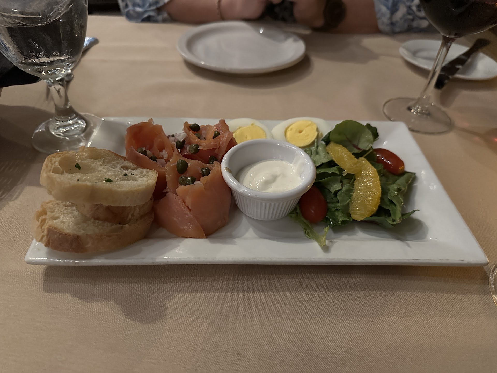Read moreI have wanted to come and check out Chateau West since I moved to Hillsboro Village, since I drive by it every time I get off the highway. This cozy restaurant is tucked away right off the highway with plentiful parking and handicap accessible access. Upon entering the restaurant (which looks to offer a small amount of patio seating when the weather is right) you are immediately breath taken by high vaulted ceilings, soft warm light, a bar against the far wall with extensive wine selection, and well dressed staff serving and seating guests at equally well dressed tables. We had a reservation for 2 on a Saturday night at 7pm and probably wouldn’t have had to wait long if we just showed up, but it was nice to be seated immediately. Fresh bread and water is served upon sitting down at your table. Our server’s name was Sam and he was an absolute sweetheart! He catered to our every need with a smile and breezy quips that made us laugh and smile. The menu was a great size and most of the appetizers appealed to me more than the entrees! So my mom and I decided to order a few appetizers, one at a time, very European style! We started with the house smoked salmon. It was tender, perfectly smoky, and complemented by the crème fraiche, capers, and egg. Sam made sure we were ready for our next course before bringing it out which truly made this an experience instead of your normal dinner out. Our second appetizer choice was the goat cheese and fig fondue which was served with baguette bites. The fondue was creamy, perfectly melted and stayed nice and hot with a tea light candle lit beneath the pot. Sam offered to bring us more baguette when we ran out to finish off the fondue, but we knew we had more food coming! So we opted to continue on to the roasted beet salad. It was fresh, crisp, and the fried goat cheese medallions added a perfect hot and crunchy component to this dish. After our appetizers, we decided to split an entree. Between the coq au vin and boeuf bourguignon, Sam recommended the beef, and we were not disappointed! He was kind enough to split our dishes so when we finished, I was thankful for the leftover bread from the beginning of dinner to sop up some of that delicious gravy. At the end, even though we were no longer hungry, I spotted a dessert trio that included vanilla pears, crème brûlée, and a flourless chocolate cake. It was the perfect way to end the night with some sweet little bites!