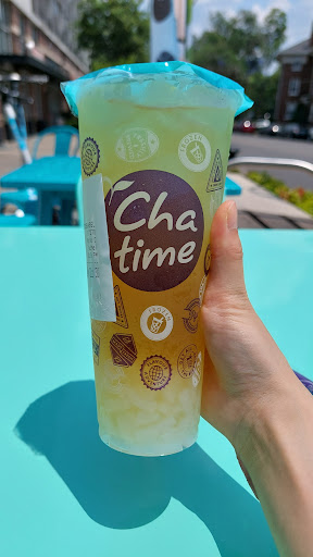 Chatime was always my go to spot on the east coast so I was had to go check it out when I heard they were open. The space is very vibrant and has a cozy seating area for patrons. On the left when you walk in you have self ordering kiosks which is nice and you can place your order with the staff if you're unsure what to order. The menu is slightly reduced from what I've seen at other Chatimes but I think that's because they just opened up (about 2 weeks ago from the time of posting this review) so I'm hopeful that they'll get the rest of the Chatime standards. They do offer a large 32 oz size which is a first for me.