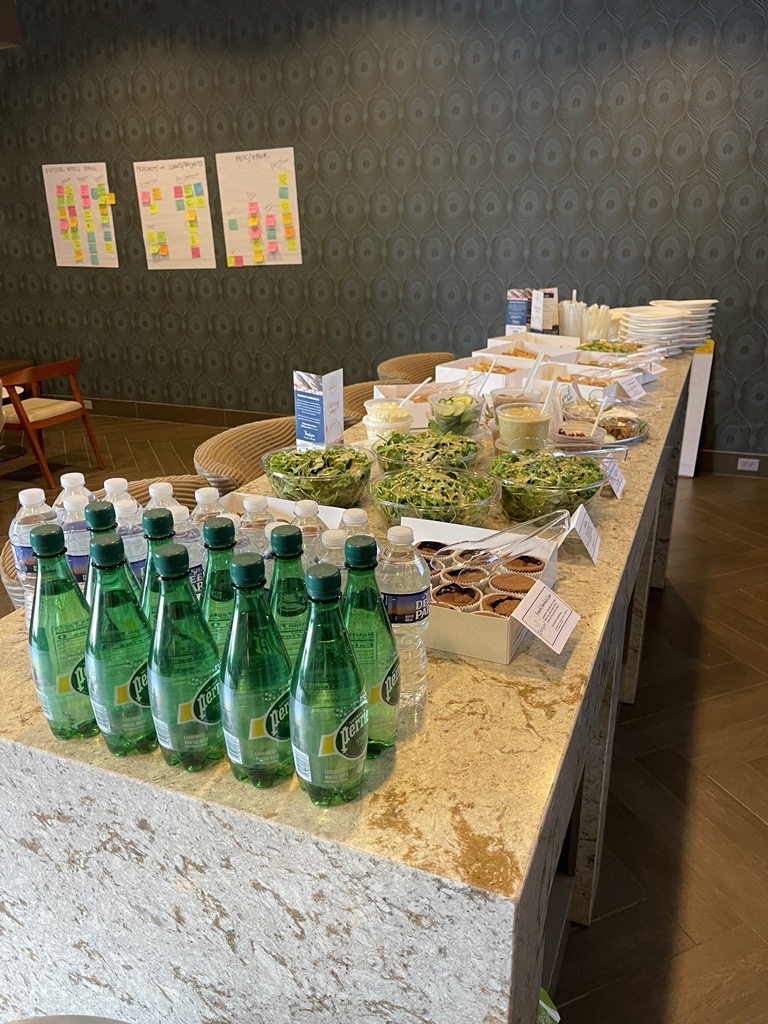 The day of the event, Elodie came and set up the lunch right on schedule. We had a spot ready for her in the back of the room, and she was able to display her food beautifully, as pictured. My colleagues absolutely loved every aspect of the lunch, and I've had a few of them ask me to bring chocolate cake next time I visit their home offices. The variety of baguette sandwiches were a hit, the butter, honey, and spreads provided with the cheese board gave folks options, and the amount of food was perfect!