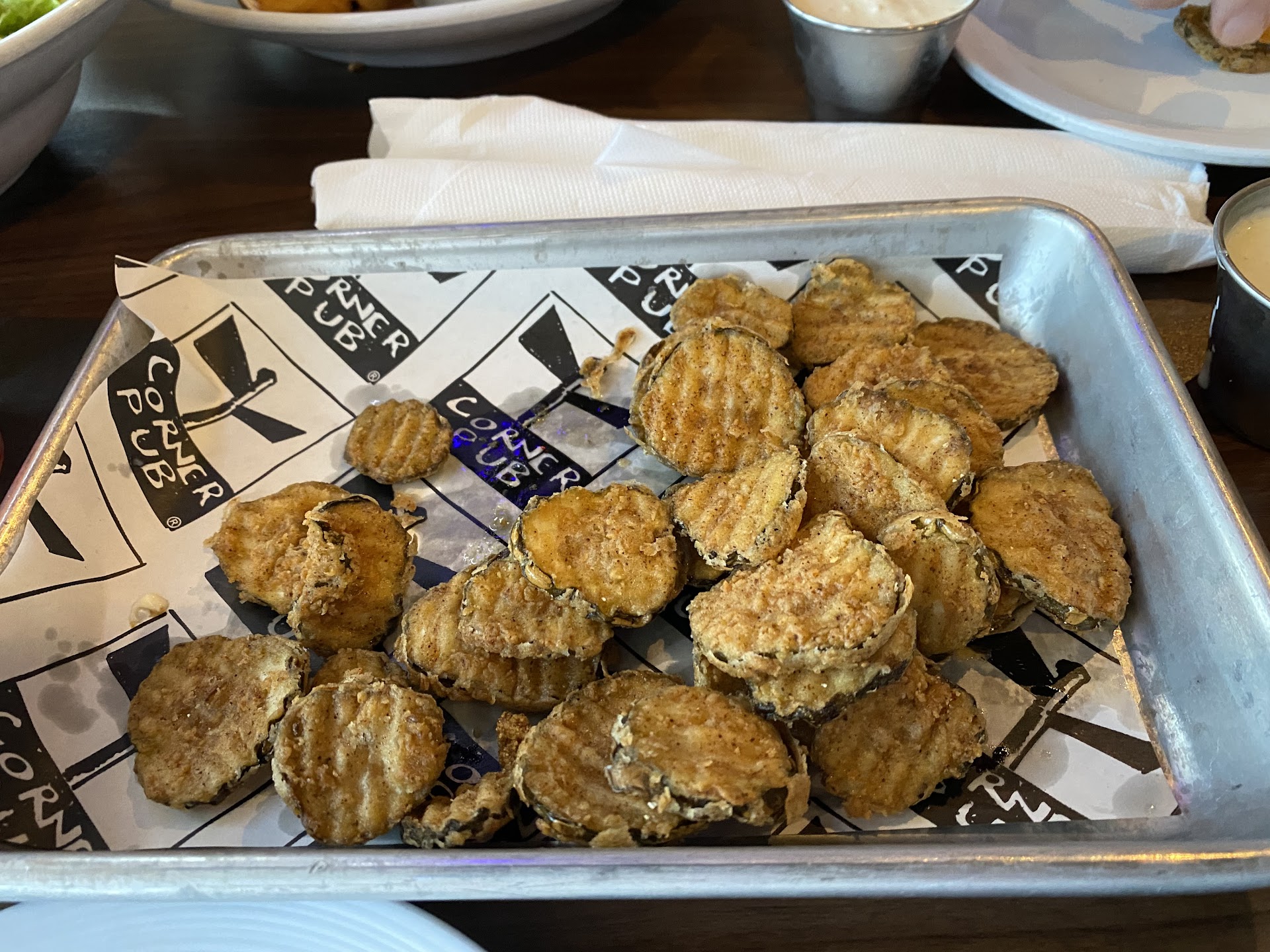 Read moreOur son lives in Nashville, so when we come from Clarksville TN to spend the day with him we eat lunch out together! Today we chose to eat at The Corner Pub. We were surprised when we walked in by how spacious the pub is. A great atmosphere and you get to pick a table and seat yourself. Which was easy to do Cause all the tables were clean and stocked with condiments! Our waitress was quick to bring us menus take our drink order and get our drinks right out to us! For an appetizer we had the fried pickles. It was a really nice portion and the flavor was amazing. They were definitely addictive. Thereâs no way you could only eat one! For our meal I chose the mushroom Swiss burger with onion rings. My husband had the same but with a side salad and our son had the fish and chips basket with a side salad. The burgers were cooked perfectly with amazing flavor. I have to give credit for the cook paying attention to detail. I ordered my burger with no Mayo and I received mine with no Mayo. (So many places get that wrong so many times) Thatâs a really big deal to me! My husband has been wanting a really good burger for weeks and today he got one!! My onion rings were crispy and tasty! Just perfect!! Our son is a vegetarian and he was really impressed with all the vegetarian meal options on the menu. He said his fish basket was really good. Perfect, crispy and delicious! I was really impressed with the the side salads. It wasnât your typical little bowl of salad. It was a big full bowl loaded, fresh and looked as good as it tasted. Our waitress was friendly, attentive and smiled and checked on us often! We will definitely be back again! Thereâs so many more things on the menu we want to try!! Definitely if you are in the Bellevue area, give them a try and definitely start your meal with the...