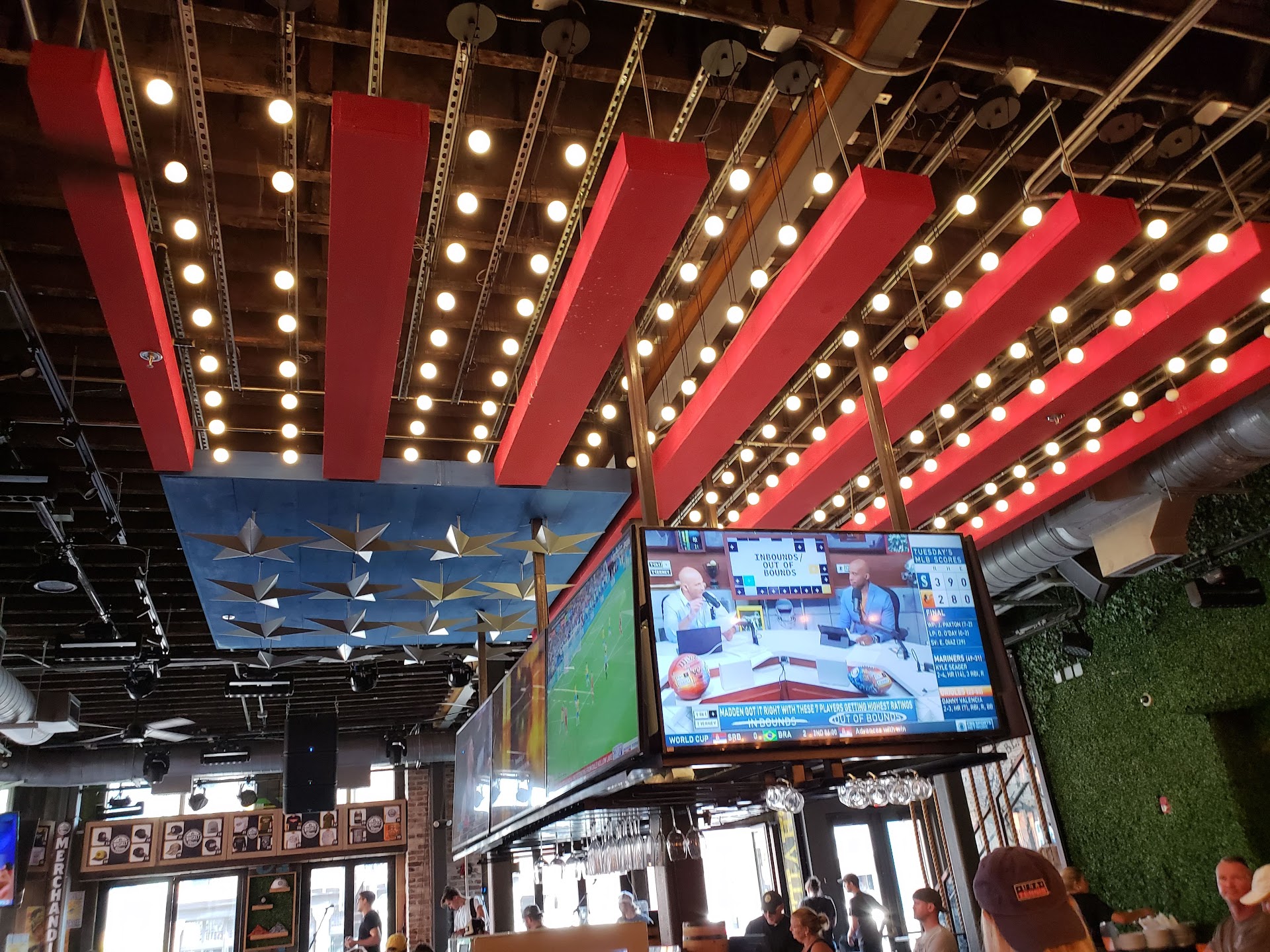 Read moreThe entertainment was great, but the overall experience was not. To start out, the bathroom was dirty and needed attention. Next, when the waitress took our order I asked for water with my meal (it was hot out and we'd been walking all afternoon) and the waitress brought me out a little plastic cup of water. I asked her for a large glass of water and she appeared annoyed, and the service from that point went down hill from there. She was not friendly at all. I ordered a patty melt, (well done) with sweet potato fries. The fries were cold when they arrived and some of them tasted stale like they had been sitting a while so I asked for fresh sweet potatoes fries and they never came. I asked a couple of times about them during our meal (approximately 30 minutes after the food arrived) and every time I was told, (once by the waitress, and once by a supervisor) they were still working on them and they weren't sure what was taking so long. Meanwhile, the patty melt was pink (not well done), and it didn't have carmelized onions on it? The rye bread was not fried, but was slightly toasted with no butter on the bread. I asked the supervisor about it when she came over and I was told they make them different every where you go. In my 45 years I've never seen a patty melt cooked that way. I never write negative reviews and I am not a picky customer! But this experience was really upsetting and frustrating to me because I was left feeling like i was inconveniencing them. I'm sure this is not typical but some definite changes could be made! I don't think I'll go back to eat there, maybe a beer and music perhaps? P.S. I love Deirks Bentley, so sorry Deirks!! I do love our Flag on...