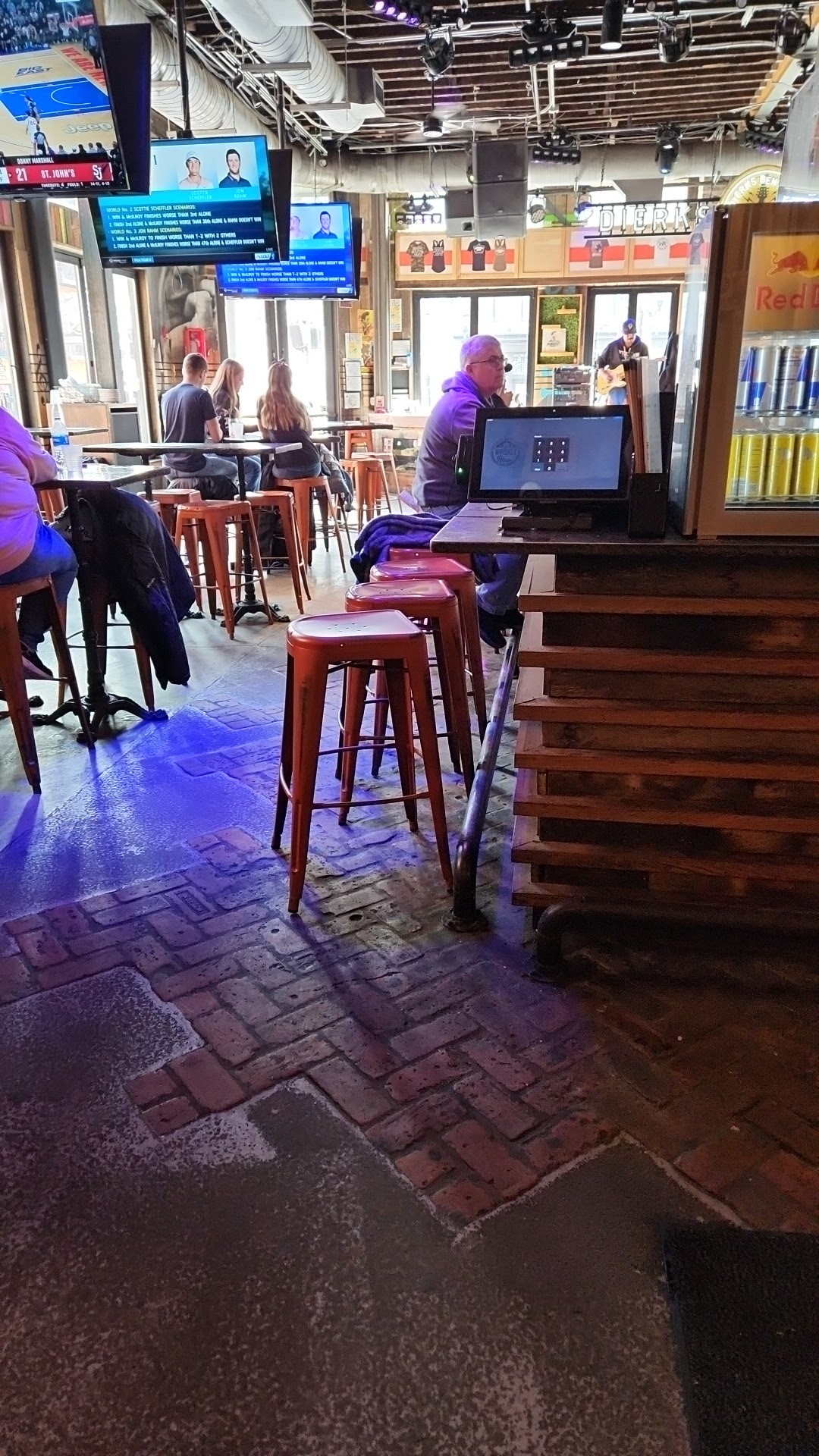 Read moreSmall but hoppin. We went for a stroll down Broadway before seeing Little Big Town. We had dinner here at Dierks'. Hubby had the brisket sandwich and I ordered the burger. I wanted to try his Row94 whiskey but they were out! Very disappointed. The bands were good and though the bathroom was small it was clean with an attendant. We left and wanted to go to couple more spots on Broadway before our show. By the time we got to our next bar, I noticed I started to feel sick to my stomach. I felt like that the rest of the evening even through our concert (where I didn't even have a drink, I got a ginger ale to try to help), through the night and into the next morning. The whole next day I still felt bad and we kept having to come back to our hotel for "reasons". We just got home and I looked up the menu for my curiosity. I hadn't brought my reading glasses on our trip and my husband had to make sure that there was nothing on the burger that I would be allergic to, which there wasn't. I noticed on the menu that only the burgers had an asterix, which I find odd. At the bottom it literally says that these items are "served raw or undercooked" not that they may be but that they are! I've never seen that on a menu before. Thinking back I was not asked how I wanted my burger cooked so I assumed that it would be served well done. Now that I have seen this, and having experienced what I can only assume was food poisoning, I will not be ordering the burger from here again. The lighting was dim and it has BBQ sauce on it so it was difficult to tell the temperature. I do clearly recall looking for pink but couldn't see. I will say it was not raw. I do remember thinking that it was soft. I won't be...