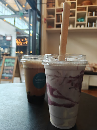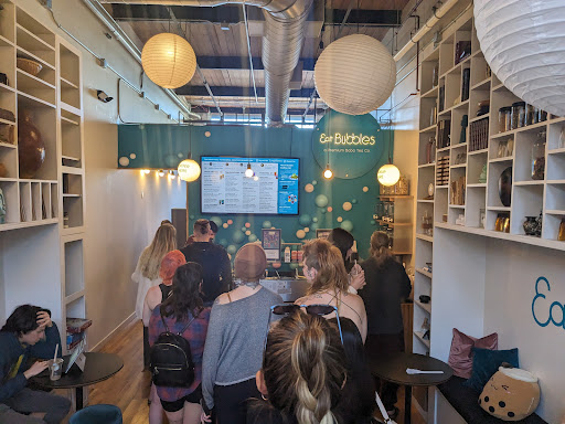 Food/Drink quality for price: great! Atmosphere: bubbly! Pun definitely intended. The bookshelves make you feel like you're in a modern flat that has an analog record player and a few cats. Noise level: not bad, but not a good place to break up with someone (My benchmark for how well conversations are hidden. I overheard a brutal and awkward one once and felt bad for them) Lighting: Staff: friendly and not rushed but work fast! They look like they are chill and lovin life with boba on the side Cleanliness: very clean Indoor Seating: super cozy tables to chat with your best friends at Outdoor Seating: none :( Outlets: lots of outlets at the comfy benches WiFi: it's there but not sure if the password is public Typical music heard: indie pop? A good mix! Car parking: not hard to find parking Bike parking: blue bike racks! Pedestrian accessibility:...