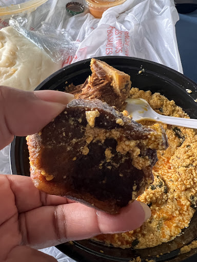 Read morei was told to come here by my nigerian friend and i was HIGHLY disappointed. i got the egusi with goat meat and fufu. my partner got the jollof rice with chicken. she was going to get goat because the woman who took our order said she eats her jollof rice with goat but i am glad she didn’t get the goat because the goat was the toughest meat i have ever had in my life. not sure if it was leftover from another day or just overcooked but i know goat meat isn’t supposed to be that tough as i have had egusi with goat meat before. my partner couldn’t even eat her chicken. it was tough also and dry. the food was not edible. the egusi had a foul taste and the jollof rice was subpar. this meal was not good at all. it’s a shame that this is one of the only west african restaurants in the area and it isn’t worth it. also, the atmosphere is peculiar. we walked into the grocery market on the first floor and we were not greeted kindly but kind of weirdly led upstairs to the restaurant área where there were over 5 men at a table talking loudly at what seemed to be a bar. the woman who took our order was very dry and you could tell she didn’t want us to eat there in the establishment. i literally couldn’t even eat my egusi with goat meat because it was so TOUGH. i definitely recommend getting food elsewhere. the malt drinks were the only thing that was good. this isn’t the...