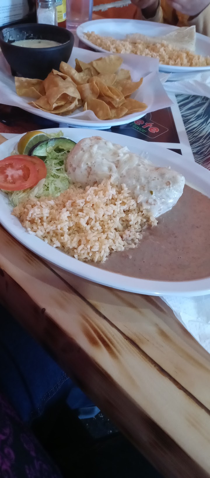 My son ordered a cheese quesadilla with rice. I had the burrito pollo. Both were excellent. My chicken was grilled and chopped which I prefer over a boiled and shredded chicken that you get in most other restaurants. We also ordered chips and queso. The chips appeared cut and fried onsite due to their thickness and irregular shape. I loved it.
