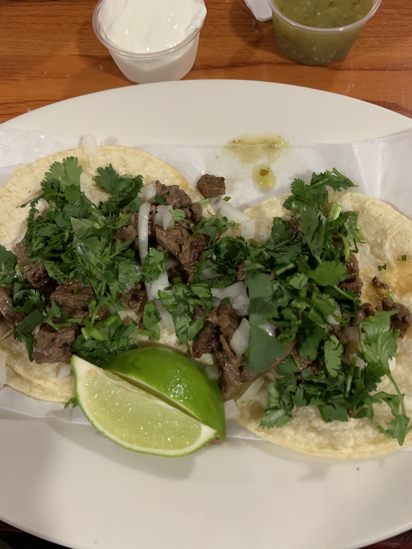 I was asked what toppings I wanted...a little confused, what do they come with...well you can have onions and Cilantro. Ok, that sounds great! Well everyone elses food came out, after waiting a very long time...no food for me. Then my 3 shrimp tacos came out, but no side of rice. The tacos had 3 shrimp chopped in half, cooked to death...dense, hard and crunchy...no seasoning, no sauce and some raw onions and tons of chopped cilantro...that was it, overcooked, extremely dry, tasteless shrimp, no sauce, not even a wedge of lime for taste!