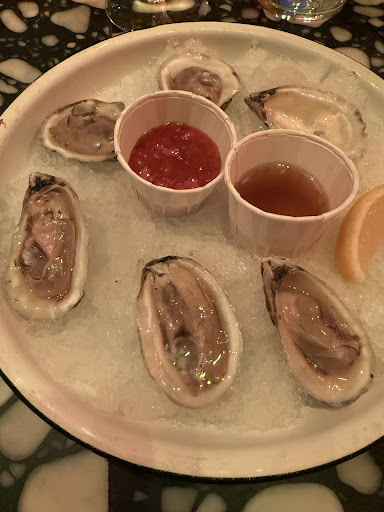 First of all, the bar tender was nice, no complaints. I ordered my oysters, and noticed that the bar tender was the one shucking the oysters. Ok, that’s fine. But eveything else happening was a little crazy. It’s important to know that there are only a handful of tables, maybe eight at the very most, but I think that I am overestimating by saying eight. Everything was in very close quarters, which is why it was a little strange that they were shaving ice for the oyster plates at the bar. The ice shaver was very loud, and definitely took over the space for a bit. There was also someone at the end of the bar chopping vegetables or fruits the entire time that I was there on the bar. The person sitting next to me was clearly somebody who worked there. He had his computer out and was editing the menu on his computer.  None of this would’ve bothered me at all if I felt like I was a paying customer, but I just… Didn’t. I just felt like I was an afterthought, which was a little disappointing.