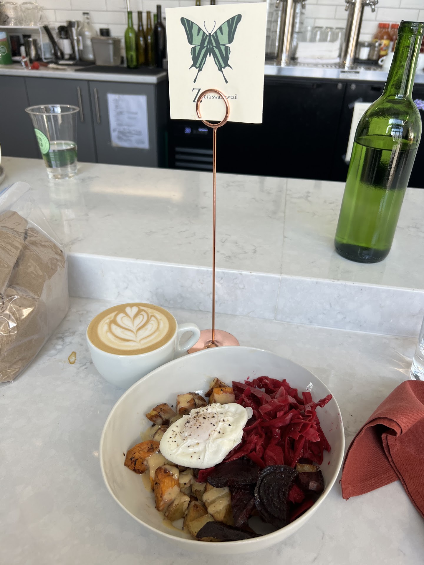 Another plus to this complex, is that they have a huge parking lot and you don’t have to worry about finding street parking. There’re so many great businesses around so you can extend your brunch and grab an early drink at Golden Pony afterwards as well or shop at Garage Sale and grab a drink there. They do have an outdoor area as well as extra seating and I’ve seen them at 100% capacity on Saturdays and Sundays during brunch hours.