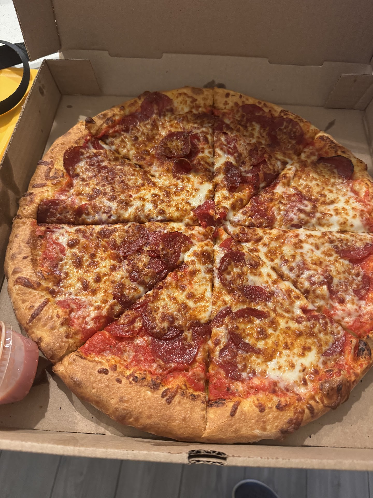 First off, I ordered through the Slice app, my requests were for extra sauce, cheese, and pepperoni. All of which were not translated to the kitchen itself. What I received 45 minutes later was the equivalent of a $5 little caesars hot and ready. Disappointment flowed through my veins to my very core. I contacted the store to inform them of my horrid dough nightmare in front of me. It was hard cheese that with one bite, would rip from the slice. It was minimal amounts of spiced pepperoni. There was no extra sauce, all of which I put in to the Slice App. This pizza was of quality that only a street cat could enjoy. I believe my Slice pizza driver potentially made 30 other stops before I received my pizza.