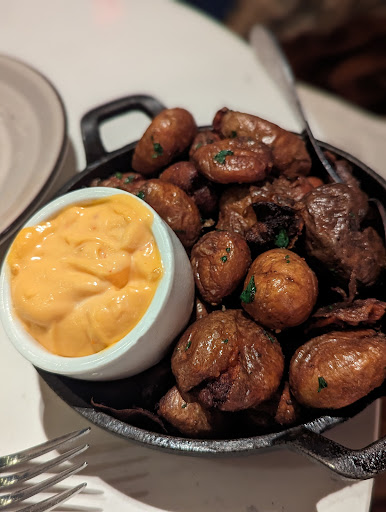 Started off with a lovely glass of champagne that was perfect and set the tone. Our reservation was at 9pm and we were seated withing five minutes of that. Our server Zachary was pleasant attentive and made excellent recommendations. The decor went above and beyond- whoever staged this, can I hire you for my home! Each section was unique, eye-catching and Instagramable. Delivered all the Christmas feels I needed. SMAll PLATES We ordered small plates as soon as we Sat down and they arrived very promptly and presented beautifully: pork belly and scallops. O.M.G. I have never had pork belly cooked to the level of perfection as that dish. The flavors and textures were out of this world. A light crust with a tender center and I literally scraped every last bit of the sauce and sprouts off the plate. The scallops followed and absolutely blew my mind. Hands down the best scallops I've ever had. Perfect crust with melt perfection in each bite, again the sauce and flavor pallette was exceptional. Scraped the plate ;). ADDITIONAL SMALL PLATES These were so good we couldn't even look at entrees. We ordered another pork belly, the carrots, and the marble potatoes. The carrots had a tahini yogurt glaze that was to die for. I am personally not a big potato person but these smelled amazing and had a great crunchy skin and soft inside , very tasty. I ate a couple of them ( which is saying a lot for me ;)! All plates were cleaned .