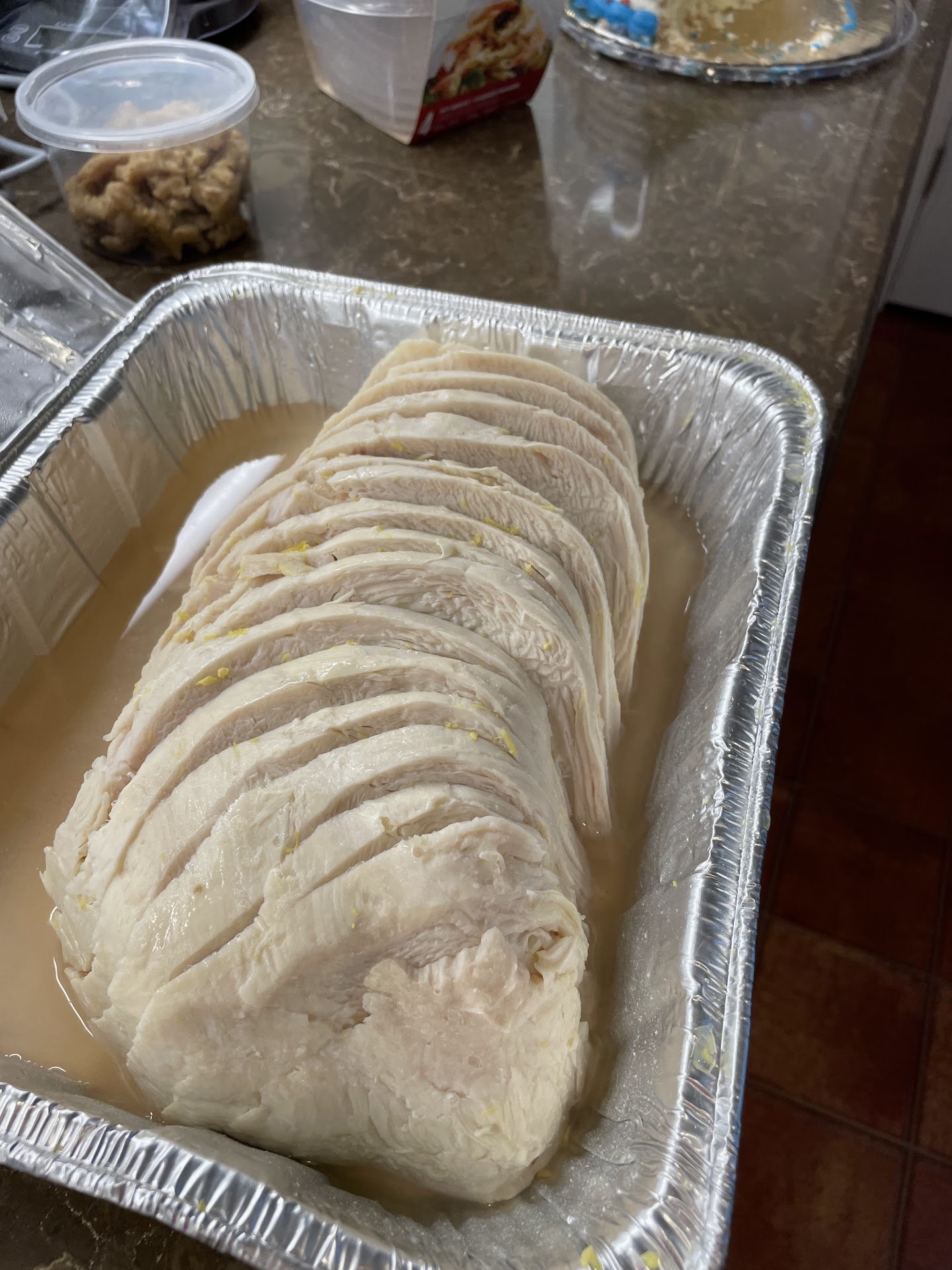 We paid $75 for 5 pounds of turkey. The menu/website/email described it as āsliced roasted turkeyā. Iām not arguing that this was indeed turkey and most likely roasted and surely was sliced, but a picture or more complete description should have been provided. We did serve the turkey and our guests were underwhelmed. Most of the ham was eaten, but quite a bit of turkey remained.