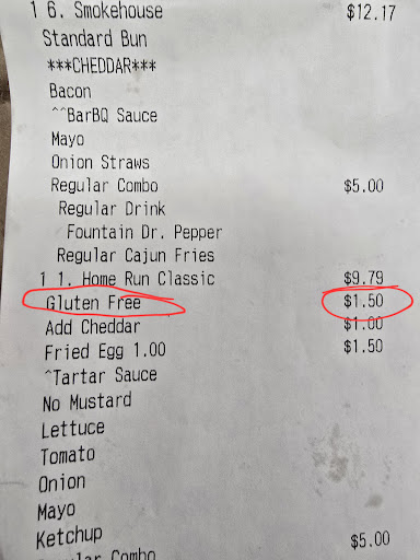 Read moreJust had door dash deliver my order. I very clearly ordered and paid for a gluten free bun. I just spent 5 minutes vomiting in the bathroom. Now I have stomach cramps. When a person with celiac disease orders gluten free food, you cant posion them with gluten. No one will answer the phone when I call. $18 for a burger I can't eat and no one will answer the phone to make it right. Update: Went to the location to get a refund. They don't even serve gluten free buns. Their menu is wrong and THEY ARE AWARE OF THE ISSUE however the owner just hasn't gotten around to updating it. The staff saw the gluten free bun on the order and just put a regular bun on the order anyway. Complete disregard for a serious allergy. I am severely allergic to Gluten. It's not a preference. I can't eat french fries from a fryer that's cross contaminated. The complete disregard done intentionally and refusal to refund my money has left me completely flabbergasted. WTH is wrong...