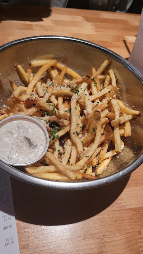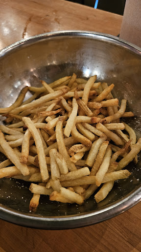 Let's talk about that burger! The seasoning was absolutely perfect, creating a flavor explosion with every bite. And whoever came up with the idea of serving the fries as an appetizer is a genius! It was such a smart way to kick off the meal and get those delicious, perfectly crispy fries in front of us right away.