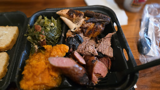 Read moreI don’t review places, but our dinner here tonight showed how low customer service standards have become. My wife ordered a jumbo chicken sandwich with no bun since she doesn’t prefer bone-in chicken. When they plopped bone-in chicken in her to-go container (I guess they don’t have plates), she asked ‘do you not have any pulled chicken?’. The employee just shook his head no; no words were spoken. She said, ‘not for a chicken sandwich?’. He just shook his head no and stared her. Ok. I got the brisket and asked what the sides were. He pointed down the buffet line; no words. I could see about half of what appeared to be offered; the rest was obscured by steamed up glass; so, I asked for Mac-n-cheese.