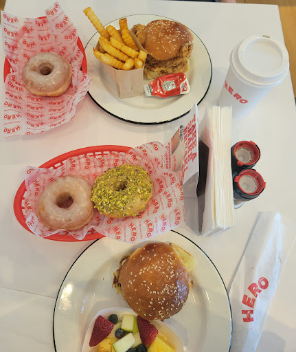 We got 2 donuts (strawberry and blueberry lemon), a salad, and the dad burger.