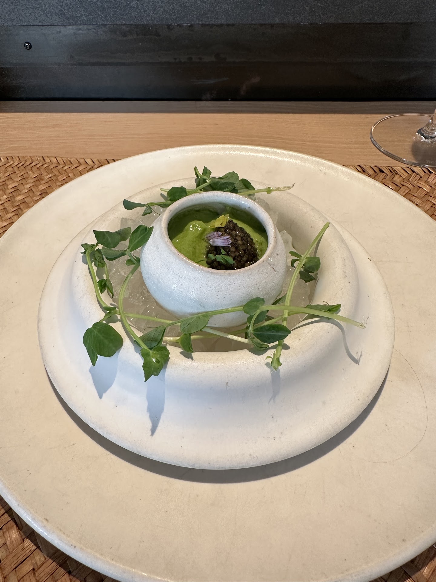 Kaluga Caviar, Hickory Nut & Nori: This was like a delicate Indian pani puri but with more intricacy and delicate flavors the last like a good finish of a bourbon as to not make you anticipate what's coming yet.