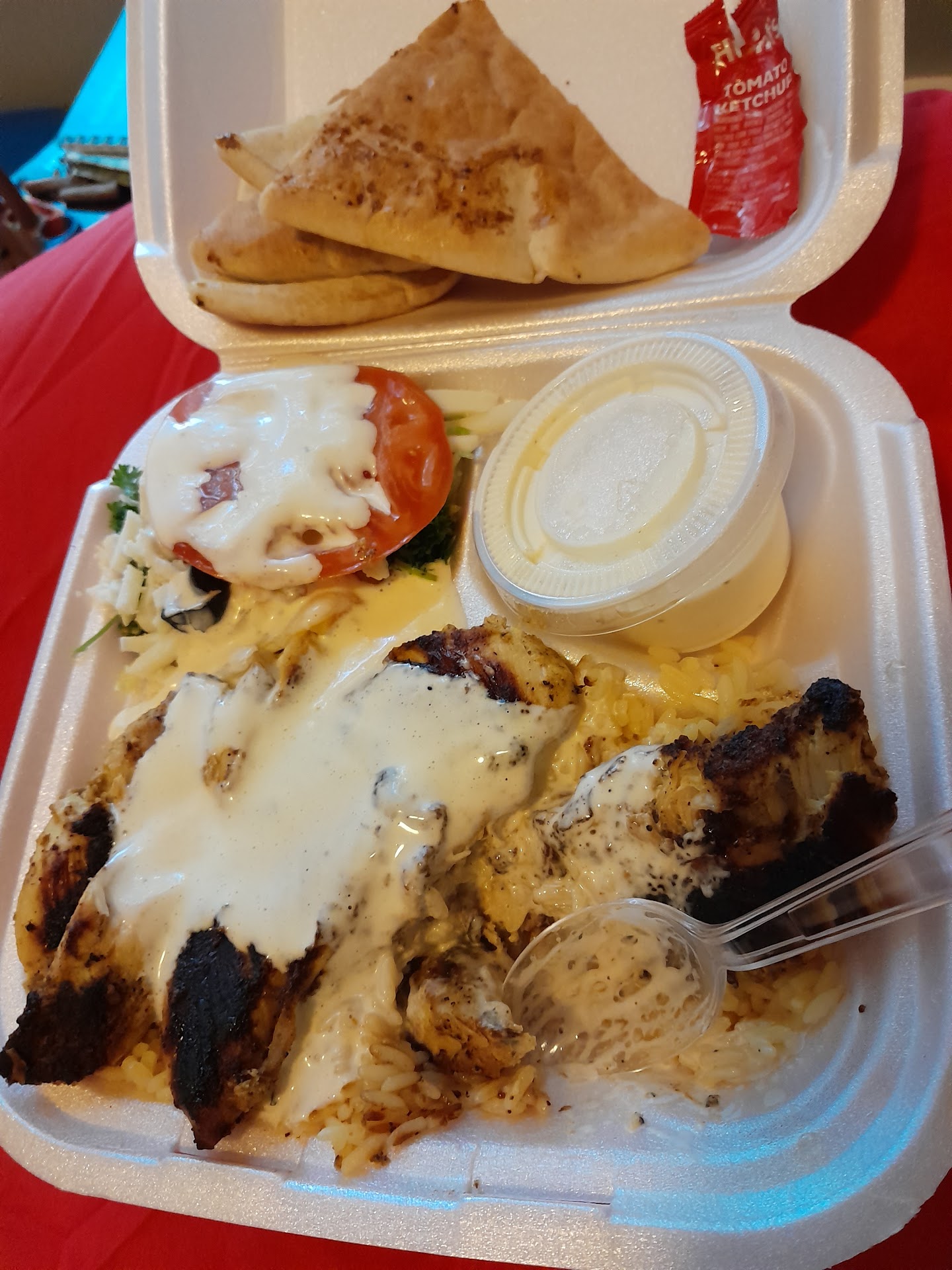 Read morePayed $16 for the food. Of course they try to guilt trip you into tipping with the iPad that they have set so the lowest is 20%. Food looked and tasted absolutely nothing like any type of gyro meat I have seen anywhere else in the world. Texture was about like a burger patty and instead of being sliced thin as it should be it was just chopped into chunks. Chicken was extremely dry and even looked old. Rice was over cooked and flavorless. Lettuce was just pre chopped ice burg lettuce not suitable for use even in a taco bell drive through. Ashamed that I even eat the food but I was extremely hungry and still threw most of it away. Highly recommend eating...
