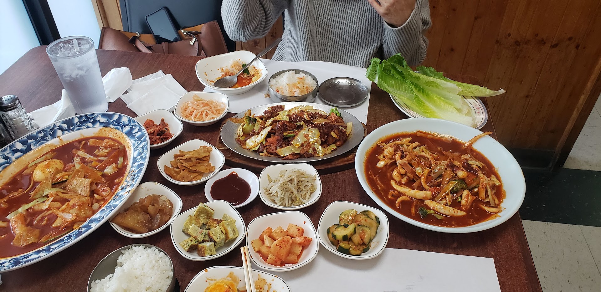 Read moreA popular spot that really lives up to it's reputation. Every single dish was so delicious I'd go back and order everything again happily. However that would mean I'd miss out on trying all the other menu options! It's an extensive list making this a solid choice for multiple return visits. The location is very unassuming in a strip mall. It is also very small. Not much atmosphere but that's ok it's comfortable and cozy in an unassuming way. We arrived with a group of 8 and had to wait at the bar next door for enough folks to leave for them to put some tables together and this was a random Tuesday. I would not go with a group larger than 4. They do not take reservations or wait-list. That said everyone was very friendly and accommodating. The service was also super fast and the food comes out quick and screaming hot. Obviously hot pots are a great choice but I loved my mackerel dish. It was salty meaty fish that really hit the spot. The seafood pancake was a great accompaniment and also makes a wonderful app for the table given it's crazy large size. They have a small beer selection, a little bit of hot and cold sake, and soju plain and with fruit flavors. You really can't go wrong here and they deserve...