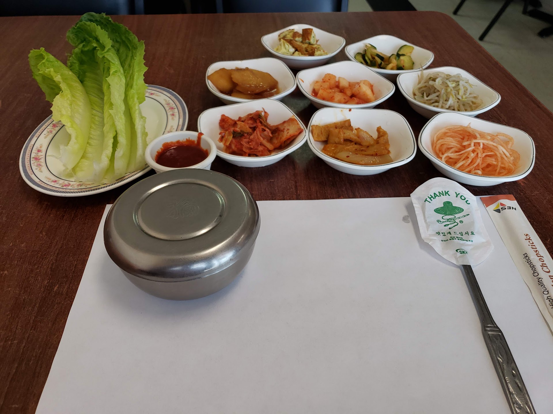 Read moreI arrived here for a business lunch early afternoon. Very clean and well appointed interior. The hot tea was good on a 29 degree day and the menu is extensive. I ordered the Dolsot Bibimbap - a very hot stone bowl with rice topped with warm veggies and Tofu (or beef is available) with a fried egg. My client had Chicken Bulgogi - sliced barbecue chicken breast with cooked veggies. We also were presented with an assortment of small dishes of Kimchi, marinated cucumbers, potatoes and three other tasty appetizers that are served with Entrees. All of the dishes and small appetizers were excellent and the Entrees have very good portions. A Korean sweet and mildly spicy sauce is served with every meal and adds a good flavor to dishes. We were afraid to try it at first glance but a friendly Asian lady seated next to us said it is a typical mild Korean sauce. We were disappointed that there was no lunch menu and Entree prices range at $15.99 up to $27.99. However, there is a range of Entrees for two up to $43.99. Appetizers range from $6.99 up to $26.99. Dishes served in a stone bowl stay very hot and one should beware of this and stir the rice on the bottom with the other ingredients. The menu states that vegetarian options are available on many of the dishes. Overall, we both had a great lunch here and I plan to...