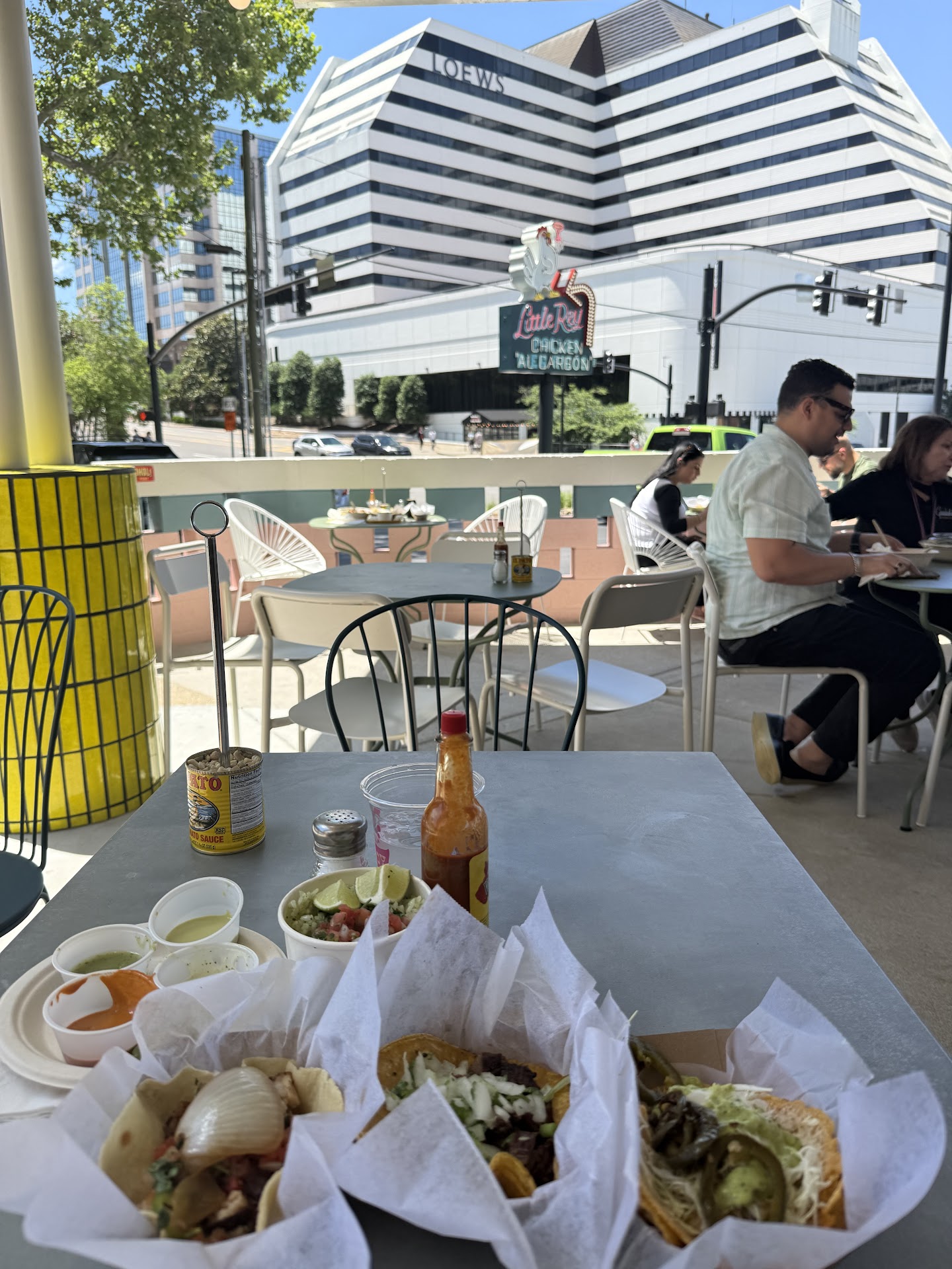 Read moreWe must have come on an off day! The cashiers charged me for a margarita, checked my ID, but then gave me a non-alcoholic drink instead. Once I said something they fixed it right away so no big deal. Then my food comes, I was missing a carnitas taco because the cashier did not tell us they were out of pork when we ordered. Even though I am pretty sure I was charged for it. Bailey was very helpful and sweet, she got it swapped out for a chicken taco right away. I wanted the food to be good at this point, but unfortunately the carne asada and chicken traditional style were extremely dry. The place has a great atmosphere and friendly staff but unfortunately the food was not up to par and it seems like the front of house could use some work. Thinking we must have come on a...