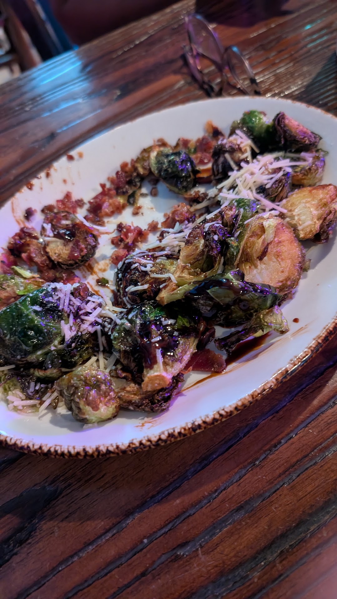 The server was quick. Took our order. They were out of some of the appetizers so we switched to wings and brussel sprouts. Wings were great. They were a dry rub. The brussel sprouts were a lot. Very flavorful but honestly a little salty. With the combination of bacon and Parmesan just was a little too much.
