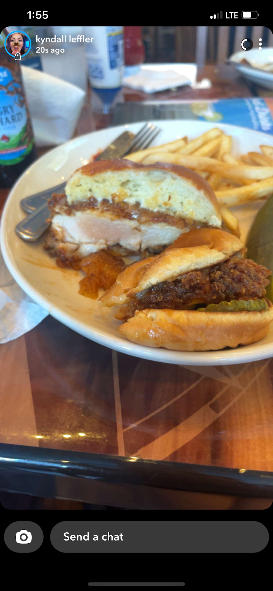 When our server brought our nachos to the table one of us accidentally knocked a drink over while making room for the dish. Our entire party works in the service industry, so we know how frustrating and annoying this is for the server. We started helping her clean the mess, but then she began to have us pick up the broken glass with our bare hands so she could mop the area. We all know this is not proper protocol. Our goal was to help her clean up the mess but not cut our hands over it. We then had to pick at our $22 nacho (that tasted like it had cheese wiz on it) for 20 minutes without any plates, silverware, or napkins and no check-in on the server. She replaced the spilled drink, which was very kind of her, except by the time she brought it over we had already been done our appetizer and ready to go.