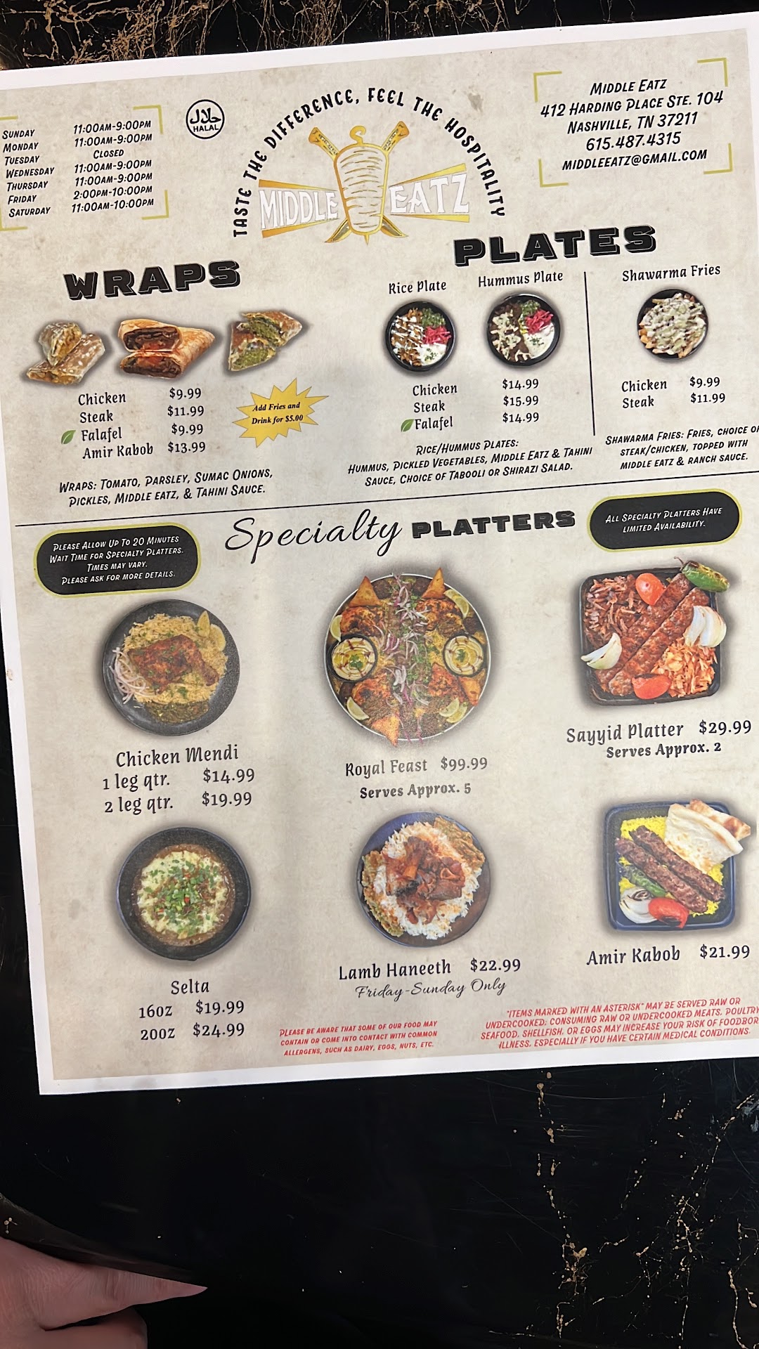 Read morePros Great food Nice setting & atmosphere Middle eastern furniture sitting area Nice & Outgoing employees Fast & Fresh Great desserts Great sauces