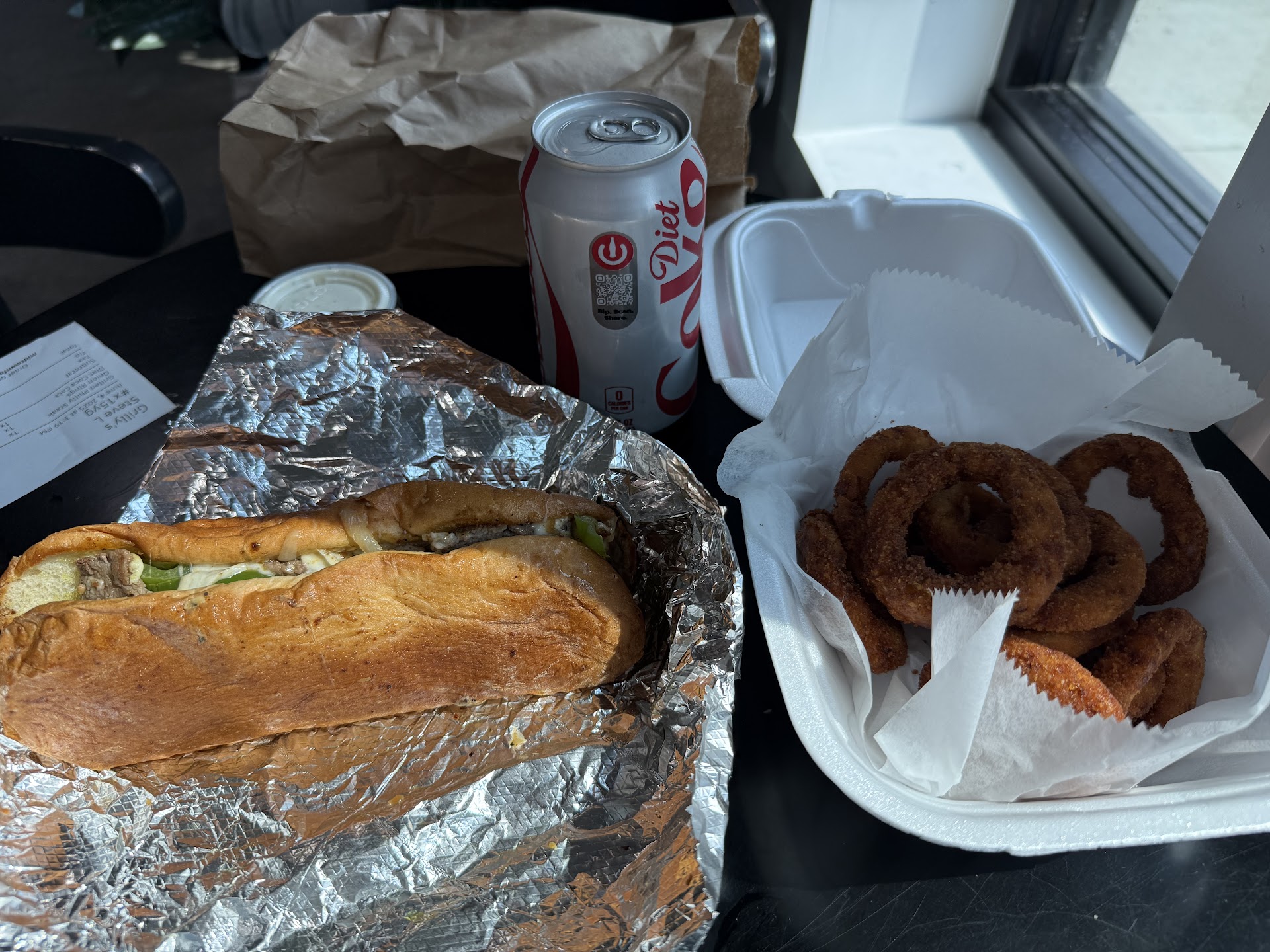 And let’s revisit the cost - $31 for a 7-8” lightly filled beef cheesesteak with onion rings and a can of soda… that’s insanity. And none of our orders came with napkins or utensils.