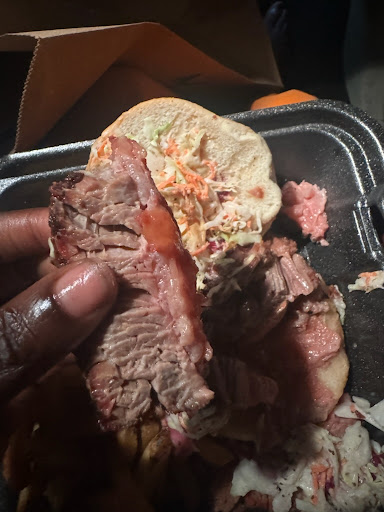 I stopped there while shopping at Opry Mills and the service was not so friendly. I saw people sitting to eat so I waited at the host stand to be sat. I stood there for over 5 mins while workers watched and said nothing. It was another guest who told me I was supposed to just order at a counter. I felt that wasted time could've been avoided had the cashier greeted me instead of being on her phone. Nevertheless, I continued to order since I was a bit short on time. The food tasted really good and was pretty quick! I got a brisket sandwich combo. A day later I returned with my boyfriend, bragging on the food. We came a few hours before closing to order takeout and I got the same meal. When we got home, I noticed my food was not fully cooked. I'm aware it was the fat, but it still was not fully cooked. I'm no stranger to medium cooked meat, but part of my brisket was still raw. When my boyfriend took it back and asked for it to be remade, the manager immediately started talking about how they weren't going to give a refund. We never asked for that. We asked for another sandwich because I was starving at this point. He argued with him that it's just fat before finally taking the same meat off the bun and putting it back on the grill. Completely unsanitary all over. I had already bitten into that uncooked sandwich and he put that same meat back on the grill where other patrons foods' were being cooked. I didn't even eat it after that because I was worried I'd get sick since that's how they handle food. This was extremely disappointing as I liked the food the first time and just wanted what we paid for. It was also disappointing as this business is known to support our armed forces and I'm a military brat. I definitely expected a better standard of food handling and treatment. Even if the fat was cooked to the manager's standard, our request for a longer cooked brisket should've been taken seriously...