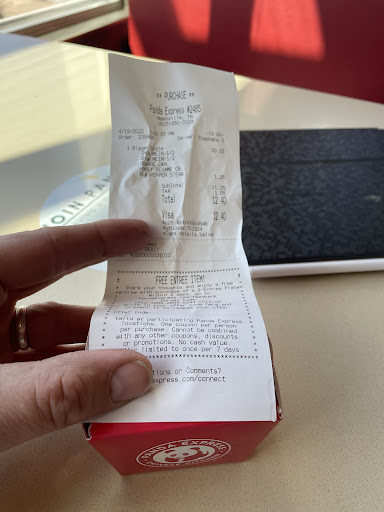 Read moreNot very happy... The guy that waited on didn't ring up the right amount of food we got so, I tried to tell him that he charged me for one too many dinners and a side dish too many. Another employee came to the counter and I was trying to explain what was going on and the employee that messed the order up started going off about something but he spoke in a different language and I didn't know what he was saying but I heard his tone. The employee that was figuring things out said the gentleman was new and new to the country. If that was the case then someone should have been standing there with him to guide him or let someone else ring up the order correctly. Then, a lady employee told me she would give me an in store credit. I told her I didn't want an in store credit it was their mistake and I wanted my money they overcharged me. Then, the guy that was trying to correct things told me that the company wanted them to cut down on their returns and give the credits. The guy asked if I had a ten so, I gave him ten dollars and he gave me a twenty. All I can say is shame on you Panda Express for making you employees scared to death to make a mistake or worse in fear of correcting a customer issue. I doubt we will go to any of your locations again and not because of the employee's error but for you putting fear in...
