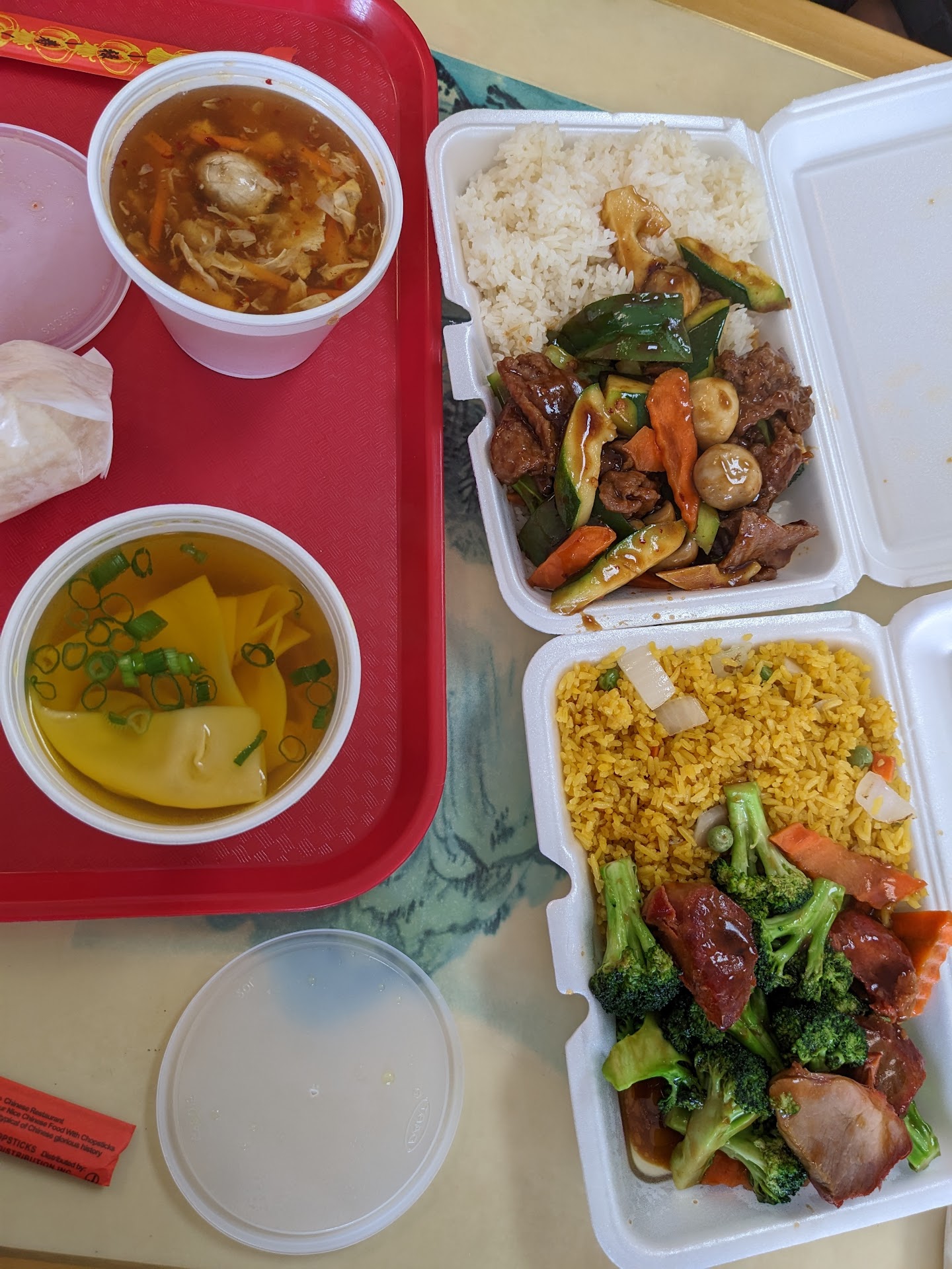 Read moreThe food and pricing here were all extraordinary. We were both happy to have discovered this gem of a Chinese restaurant a few minutes away from our hotel, and had our brunch there. The waiter was kind and quick to take our orders and clarify anything we needed and the waiting time was reasonable. I was surprised to see how large and plentiful the portions were when we were served. Each of our meals included the meal (rice + veggies/meat), soup, dried chips and a fortune cookie, and all under $20 pre-tax. The atmosphere was quiet and relaxed, with only us here when it first opened. There were ample tables available, but the washroom was off limits at that time due to maintenance. So that loses a star from my review. Besides that, I suggest anyone craving some Chinese food to stop by the Panda house during their travels to, or...
