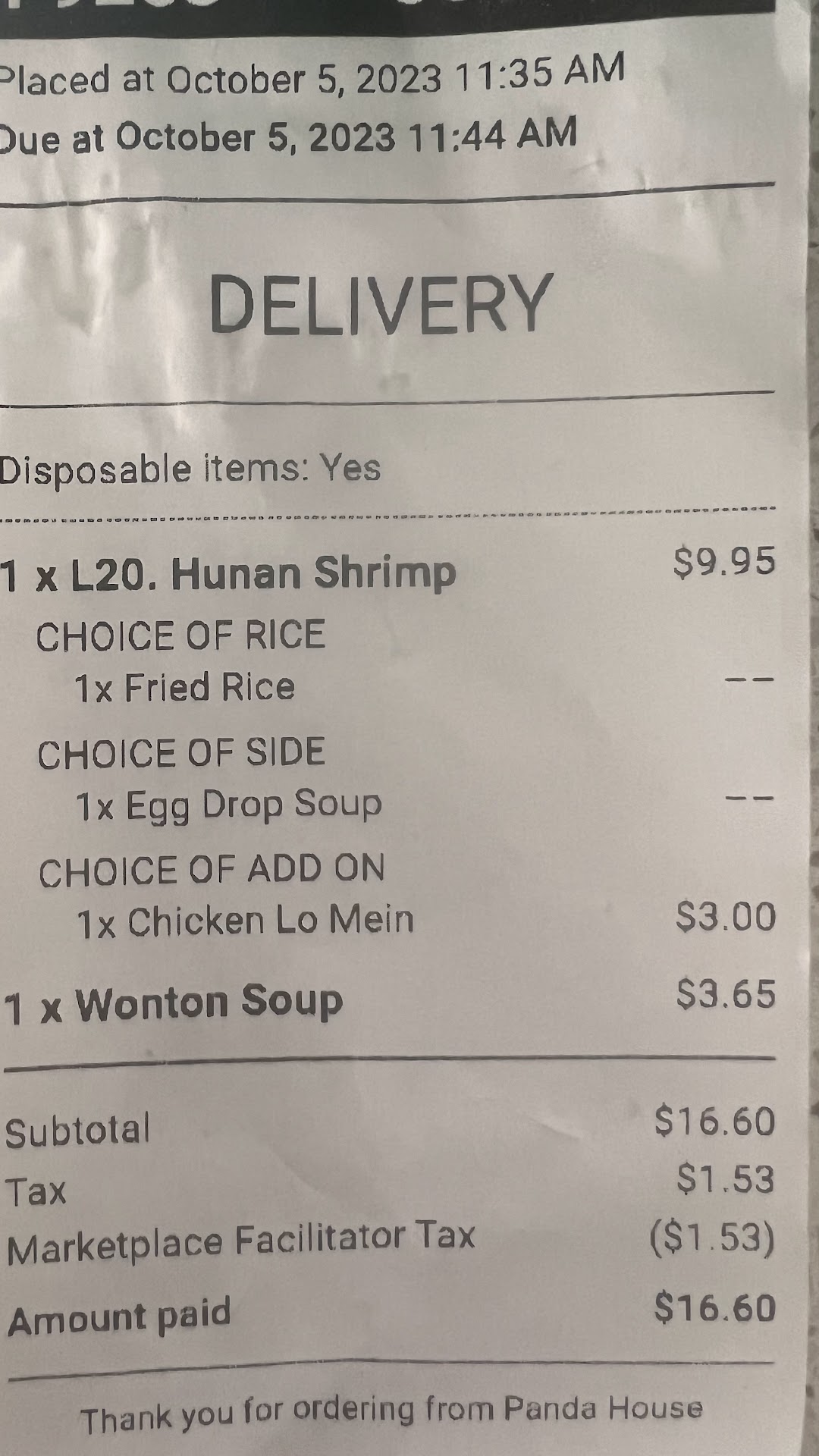 ย ย ย Read moreThe food and pricing here were all extraordinary. We were both happy to have discovered this gem of a Chinese restaurant a few minutes away from our hotel, and had our brunch there. The waiter was kind and quick to take our orders and clarify anything we needed and the waiting time was reasonable. I was surprised to see how large and plentiful the portions were when we were served. Each of our meals included the meal (rice + veggies/meat), soup, dried chips and a fortune cookie, and all under $20 pre-tax. The atmosphere was quiet and relaxed, with only us here when it first opened. There were ample tables available, but the washroom was off limits at that time due to maintenance. So that loses a star from my review. Besides that, I suggest anyone craving some Chinese food to stop by the Panda house during their travels to, or...