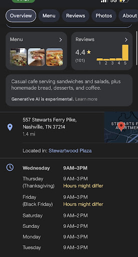 Read moreThis is the best sandwich shop in Donelson. The sandwiches are every bit as delicious as another well-known nearby spot that was featured on a TV show, but the wait time is much shorter. Paintings on the walls as well as several comfortable seating areas and arrangements contribute to a cozy cafe feel. Their coffee and baked goods are as excellent as their sandwiches. They have some space set aside for music performance, but I haven't seen it used yet. I hope to in the future.