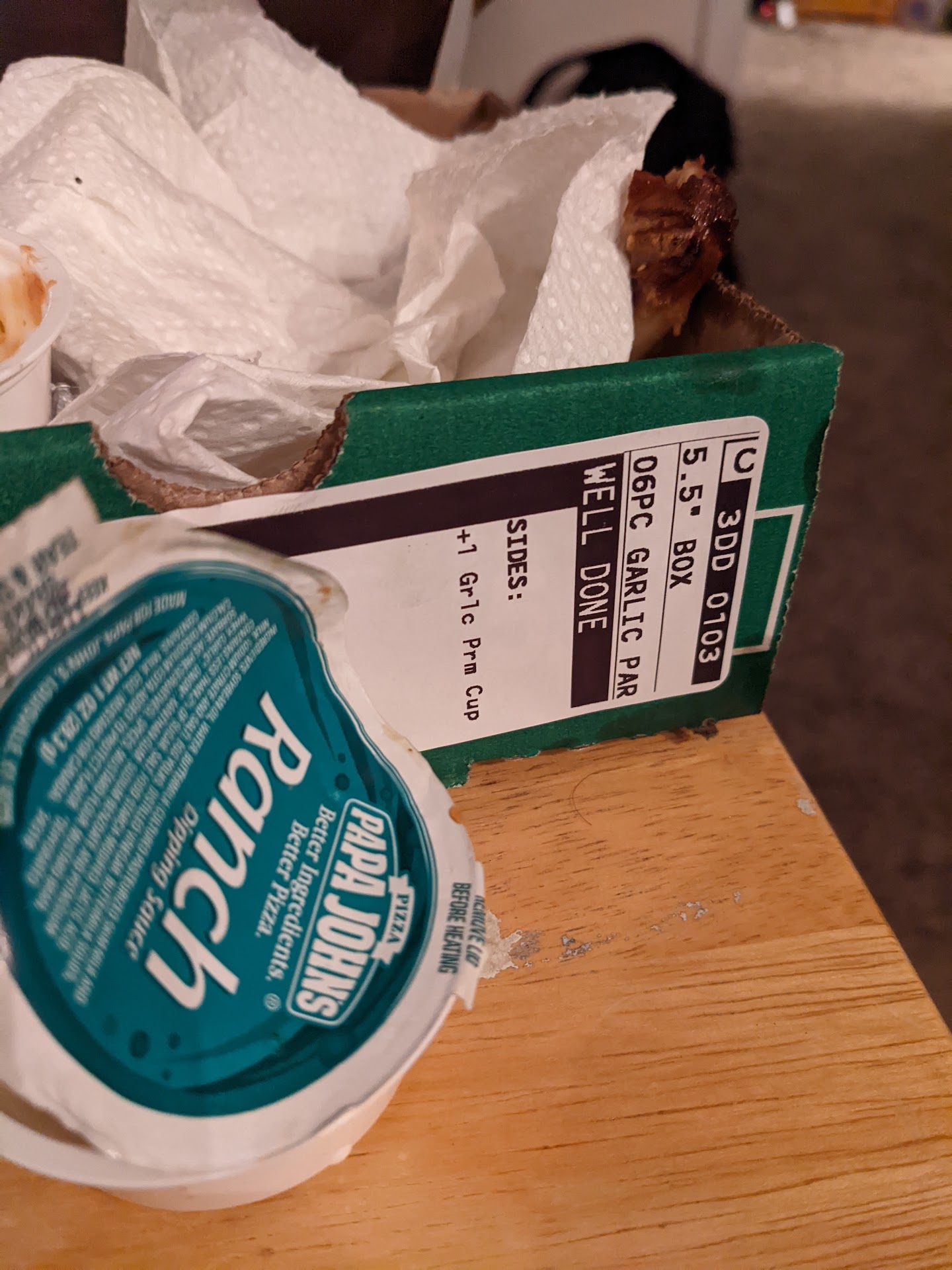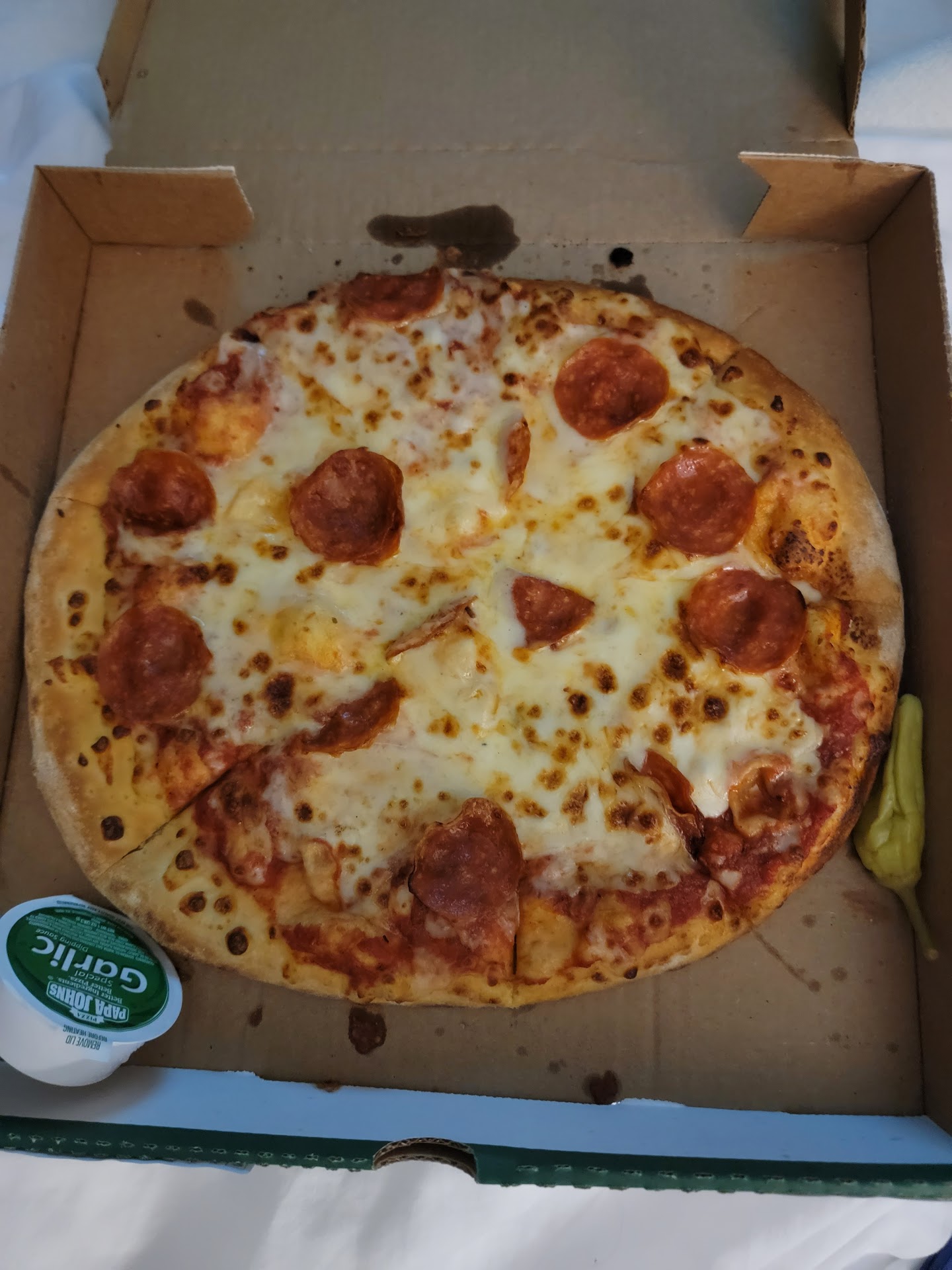 Read moreThis is not necessarily the store people's fault, I will say that 1st. When I called to place an order for 3 boxes Cheese sticks Pepperoni pizza Jalapeño, pineapple and pepperoni 2 2 ltr Pepsi. Waited almost an hr. It's a Friday night so that I'll let slide, however Doordash delivered my items, and forgot the 2, 2 liters. It says it right on the sticker. I flagged her down and got her attention. She was arguing with me stating my order did not come with my 2, 2 liters and barley spoke English when It did. It says it right on the sticker. She said I ordered through Doordash. I did not. I called it in and the Papa John's person was courteous and even read the order back to me! It's now an hour and a half later and they just now brought me the 2 2 liters. Highly disappointed and I recommend the Doordashers if used READ THE ORDER!!! Especially when paying...