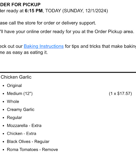 I ordered on the app last night about 6:25pm and it states it would be ready at 6:51pm. I ordered a family size papa's favorite and the monkey bread. I arrived at the store about 6:54pm, walked in and looked at the racks they usually have their online orders waiting and there was nothing on them. I walked up to the register and gave the young lady my name, and they started making my pizza. I was upset that I ordered online, ahead of time, and still had to wait for them to make my pizza. I sat and waited and when she was almost done making the pizza, she said that the monkey bread was in the refrigerator near the register. I went to grab one and there were no more there. I turned and told her that and the young lady said they may not have any. Before I could say anything, another young lady said they should have some. She looked in the cabinet and pulled one out and asked me if I had one, I said, "Yes, that's what my order says." I then asked the young lady who made my pizza if they wait to make the pizzas until the customer comes in and I am not sure if she said no they don't or nothing at all. I took the food and left. I'm so disappointed that I had to wait even longer than the 30 mins it took from the time I placed the order until I...