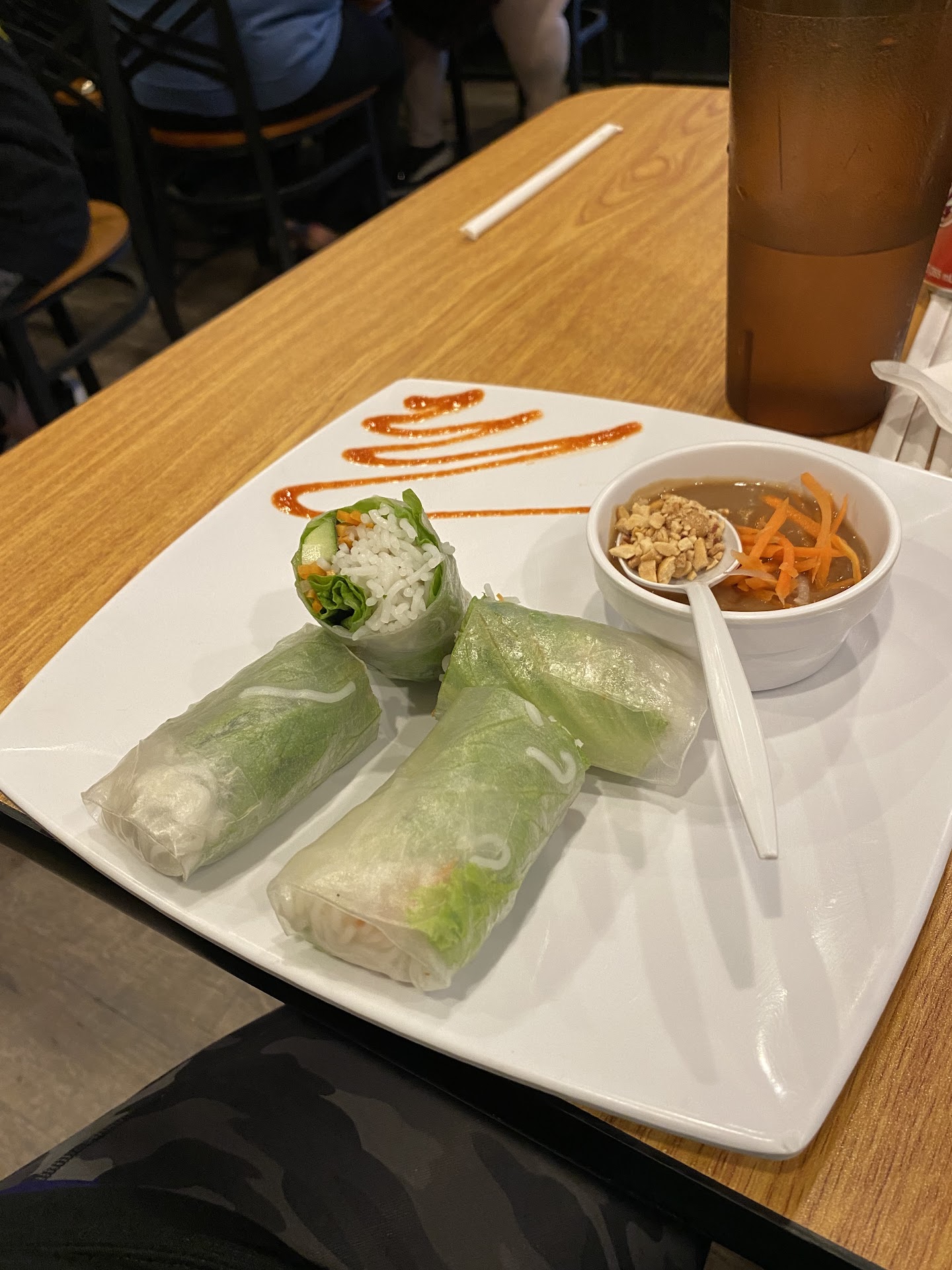 Besides this, the food was excellent. The vegetable spring rolls were bright and fresh and served with a sweet and thick peanut sauce.