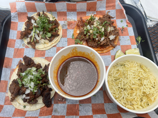 Food I tried every street taco and the Nashville hot chicken and fish taco as well as the green rice and the desserts. Overall I think the food is solid. I agree that it's authentic except for the Nash tacos. The meat is well made and juicy - large portions on the tacos. I will say this is a preference thing but I thought it was too much meat on the tacos which can make it dry when eating it especially since it's on a small tortilla. I think the birria tasted good but once again personal preference I like my birria tortillas to more cooked on the outside and less wet/floppy. Aside from that the tacos and birria taste good!