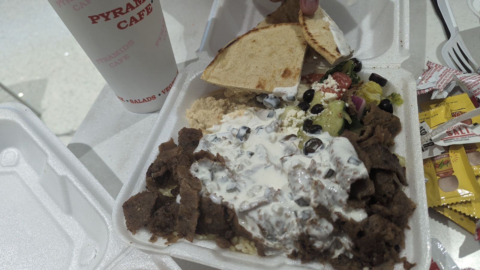 Ā Ā Ā Read moreTwo stars for attention. Most of the food is definitely good. I got falafel and good falafel is not an easy achievement. The rice was also tasty. Where there is room for improvement there is plenty, and the only reason Iām taking time to write this is because of the disappointed impression Pyramids left. Reading the reviews you see why people have a bone to pick with this place because you just want more from an establishment that represents middle eastern food, and Tennessee. Itās all love!!! The check out girls were friendly. The guys on the serving side, really did not seem to want to be there. They seem unorganized and tired. Probably because whoever is managing this place is having some trouble. The salad is actually a cold soup with wilted lettuce. The rice portion was WAY too much and the fact that it comes with pita is just too heavy. No one needs that many carbs. Offer rice or pita, (or both) I doubt youāll see too many mad customers. Provide double salad, keep the dressing aside so itās not soggy. And get some tahini sauce ā how do you just have tatziki for falafel and gyros? You got this, I believe in...
