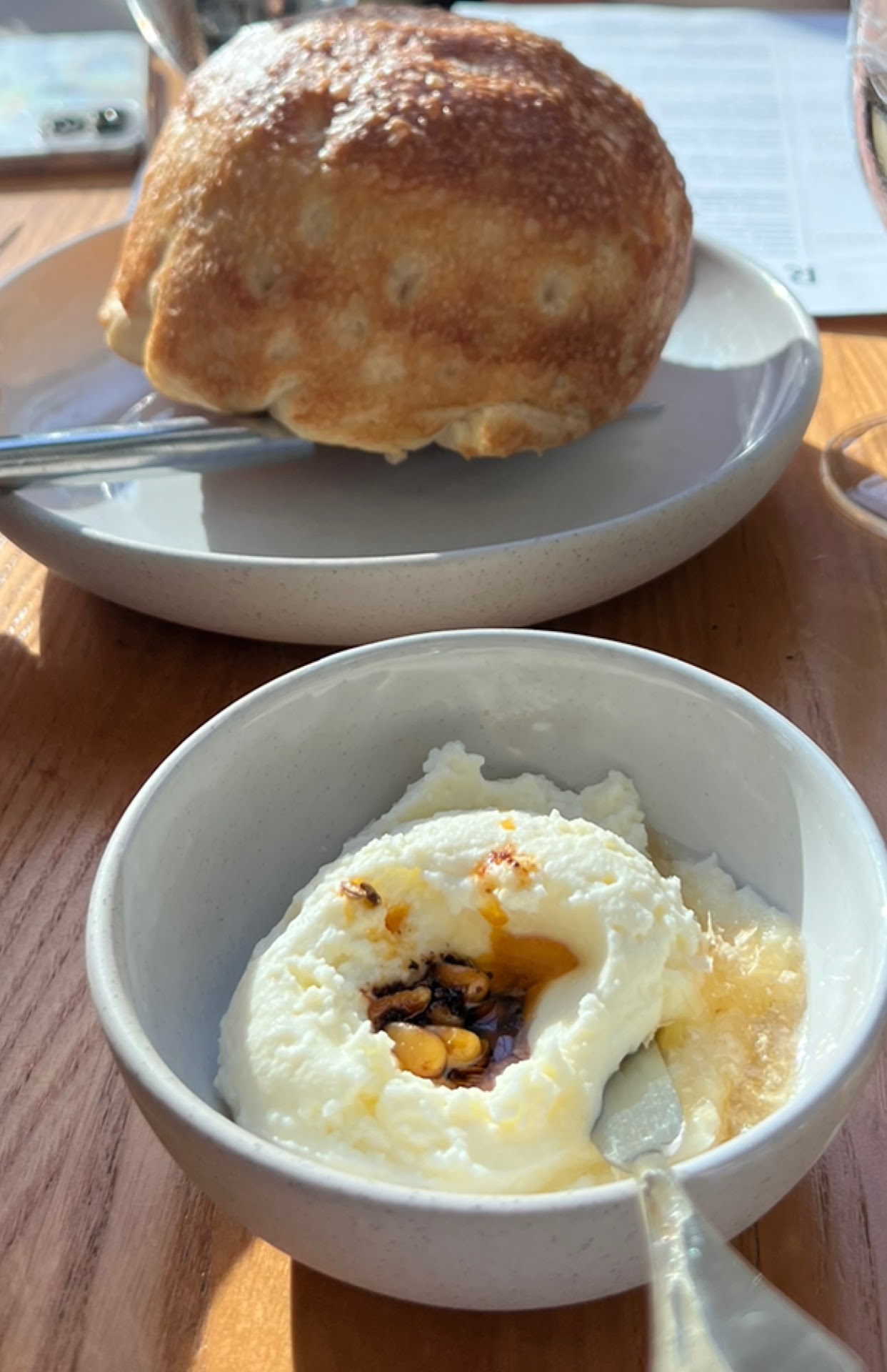 As we sat down, our waters were promptly filled. Note, our waters never went dry during our dinner - they were constantly being topped off. Our server, Alan, then greeted us and proceeded to make appetizer recommendations. His description of the focaccia had us sold. Alan also steered us away from a couple of drinks that he felt would not match our taste. He also collected information about dietary our restrictions. We went with a Chianti and a Malbec - both were fresh and good quality.